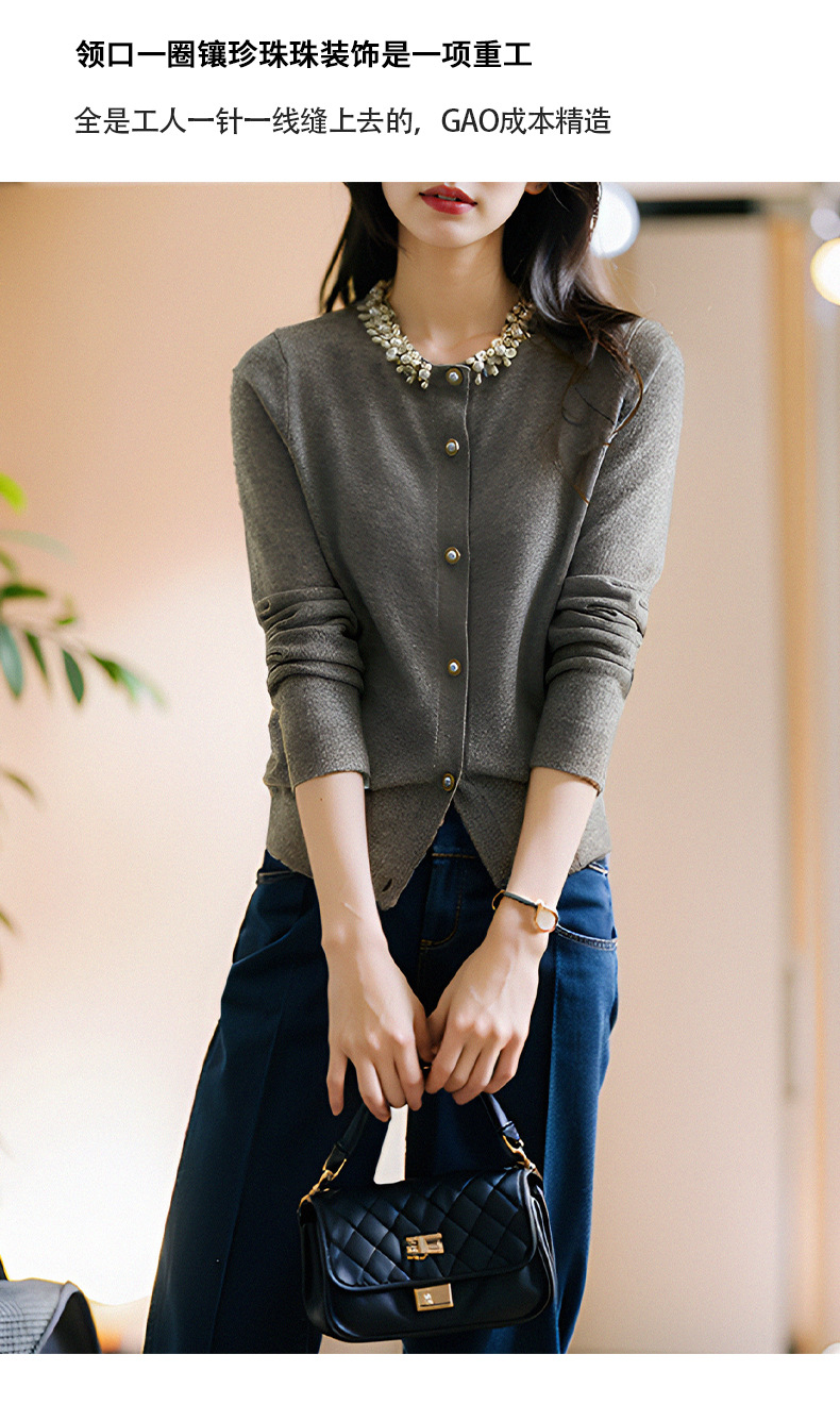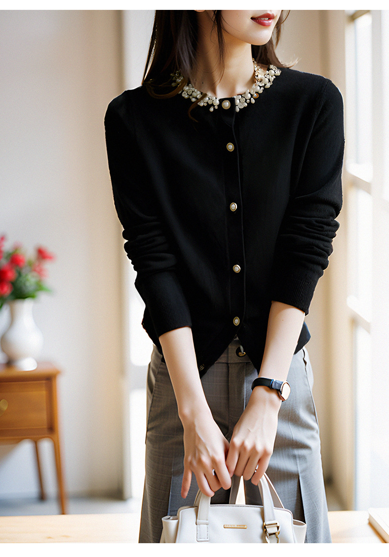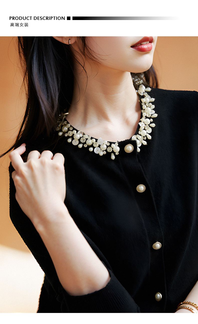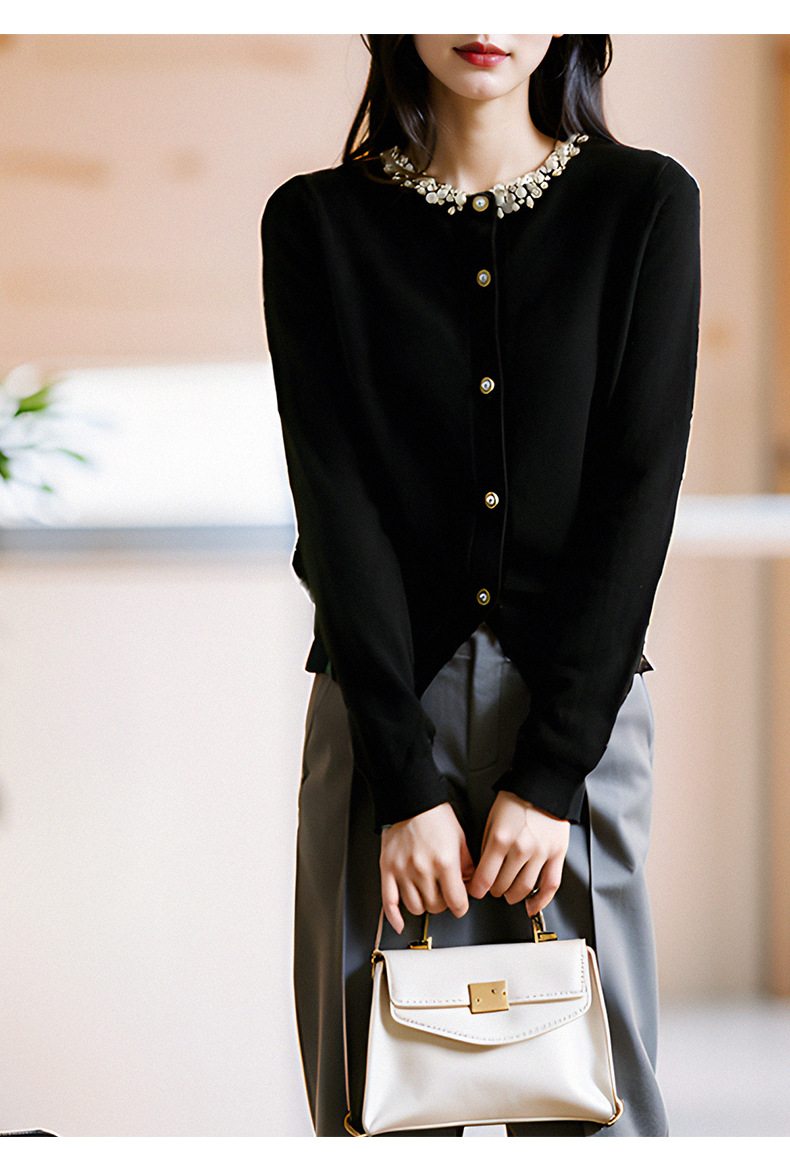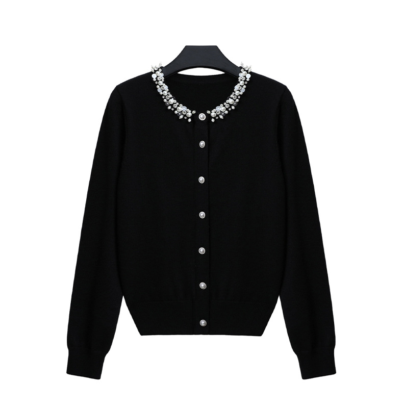 중공예 비즈 장식 블랙 니트 가디건 여성용 2025 가을 겨울 신상 루즈핏 슬림 얇은 스타일 외투 작은 향수풍 상의
