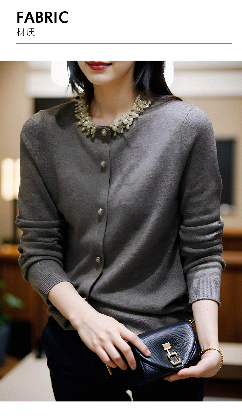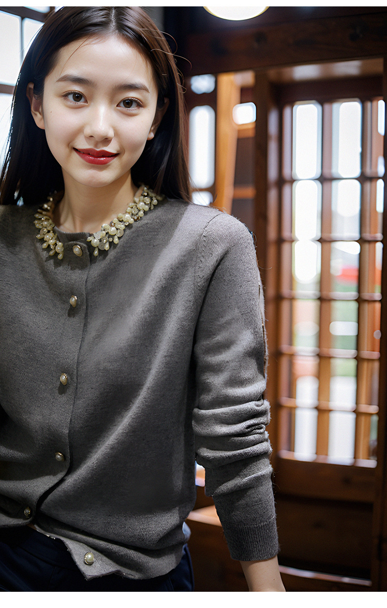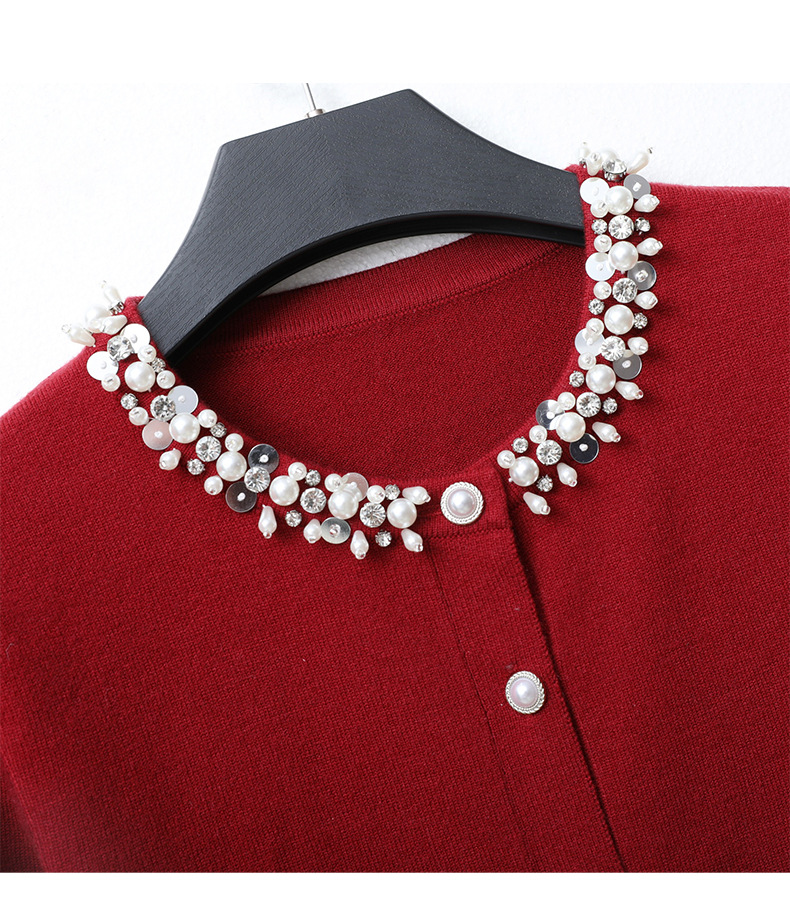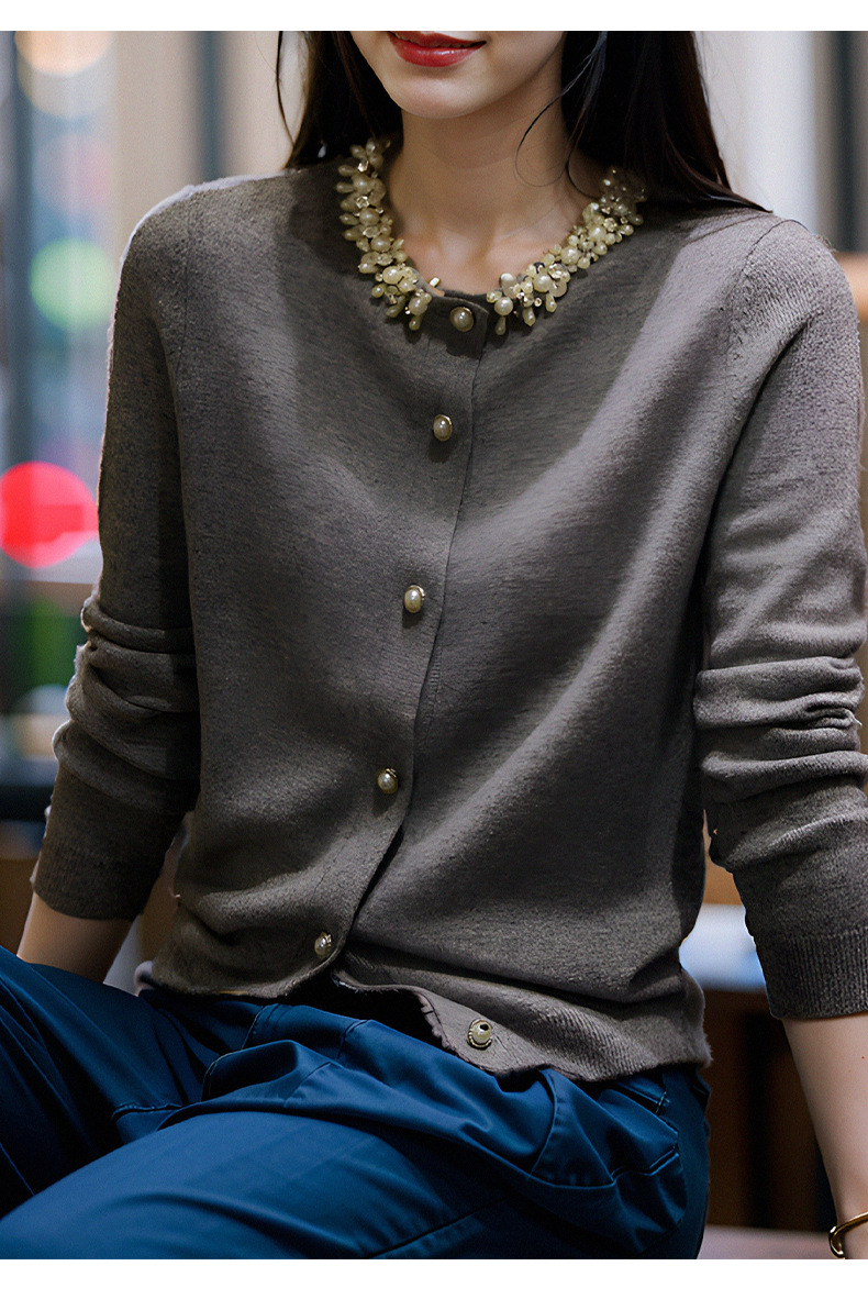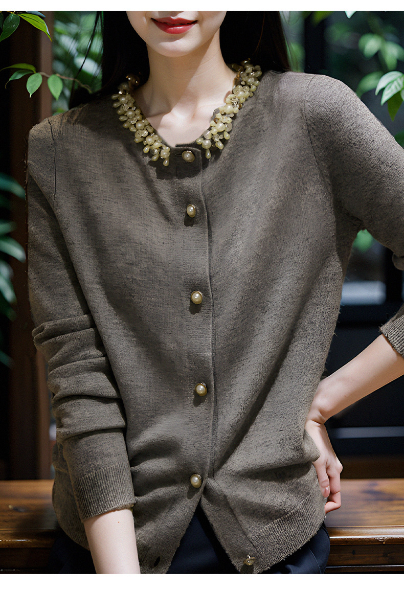 중공예 비즈 장식 블랙 니트 가디건 여성용 2025 가을 겨울 신상 루즈핏 슬림 얇은 스타일 외투 작은 향수풍 상의
