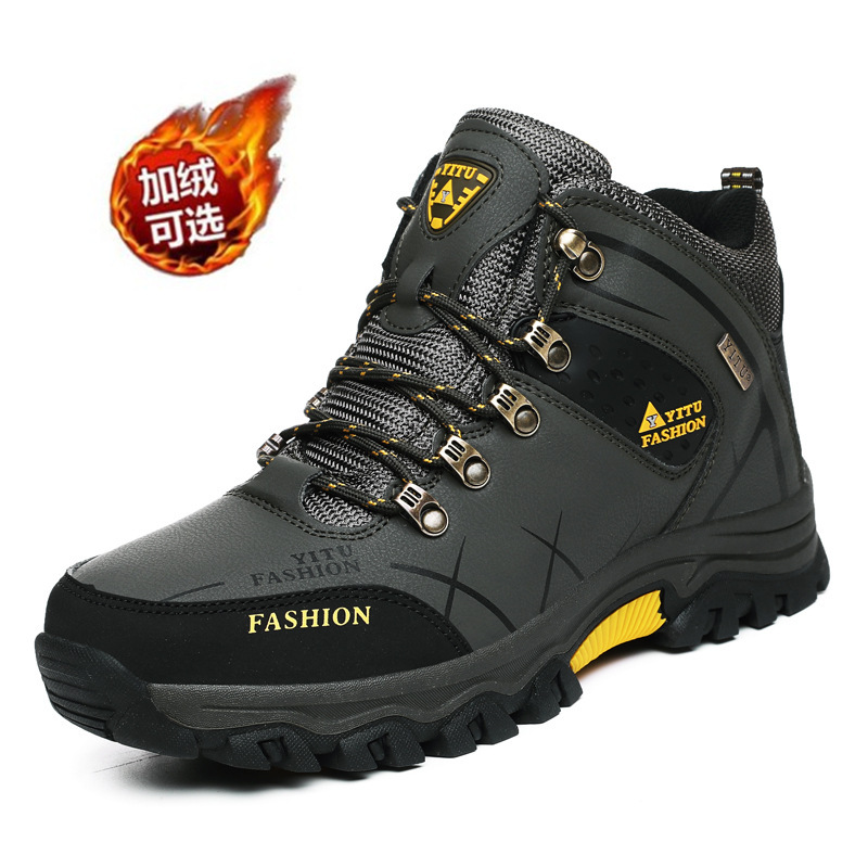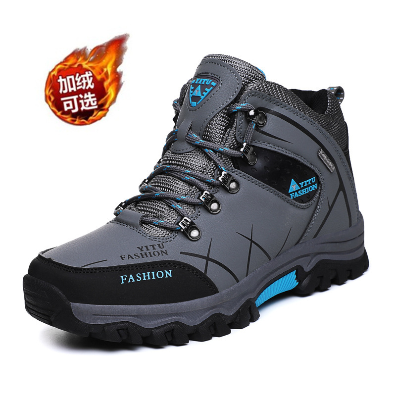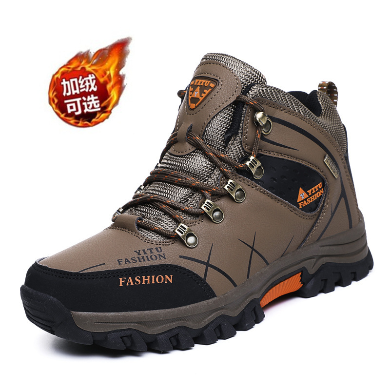 가을 새로운 야외 하이킹 신발 하이 탑 플러스 사이즈 기모 코튼 신발 하이킹 크로스 컨트리 여행 신발 스포츠 캐주얼 남성 신발