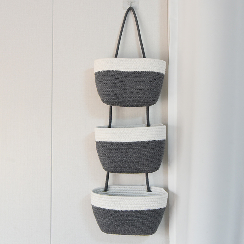 尺寸;篮子长23*高14 总高73cm 重量0.6千克,可以放在厨房 卧室 化妆间 客厅 收纳置物架 棉绳材质,结实,细密 绒软