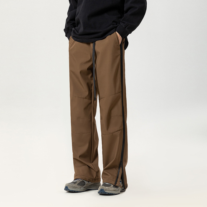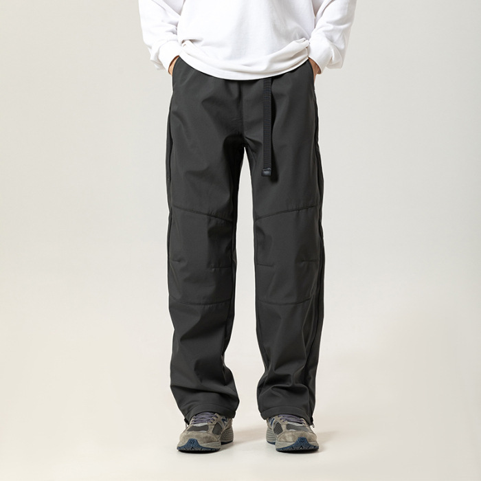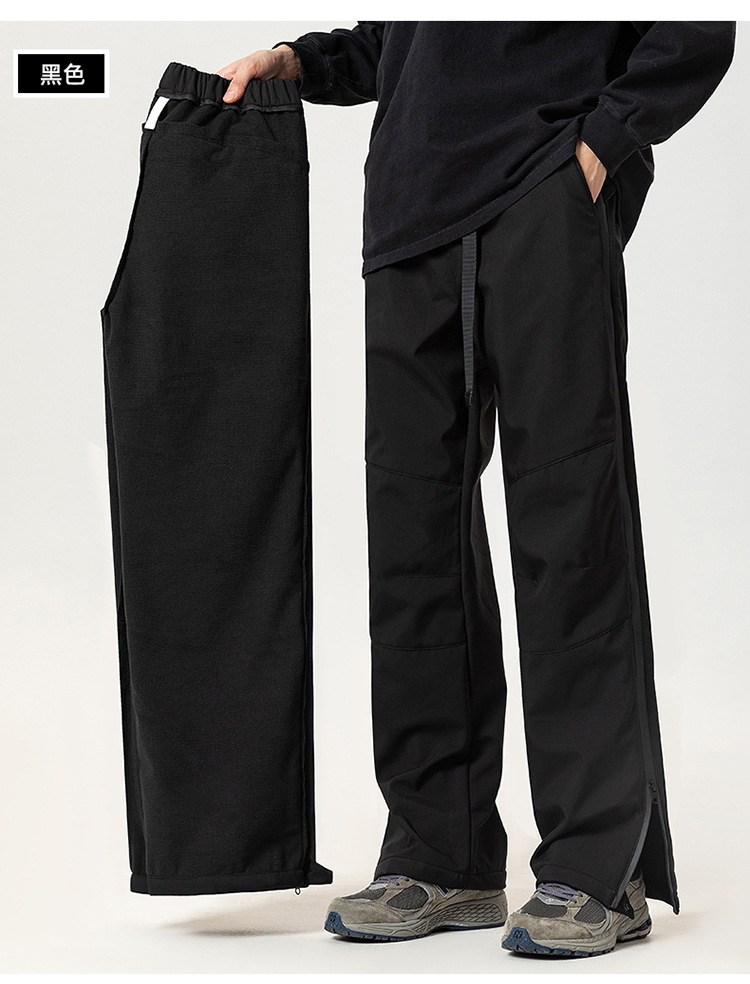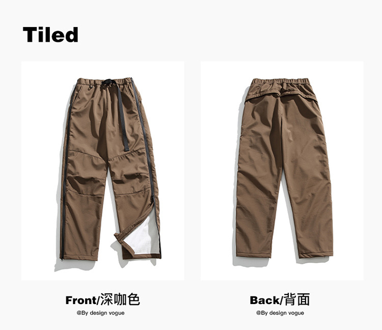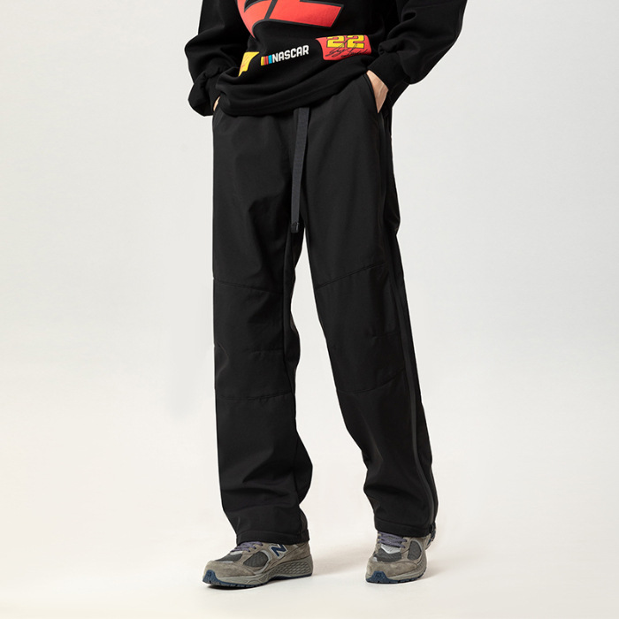 겨울 복고풍 간단한 단색 3 가지 기모 전투 바지 남성 거리 느슨한 넓은 다리 다목적 스포츠 야외 바지