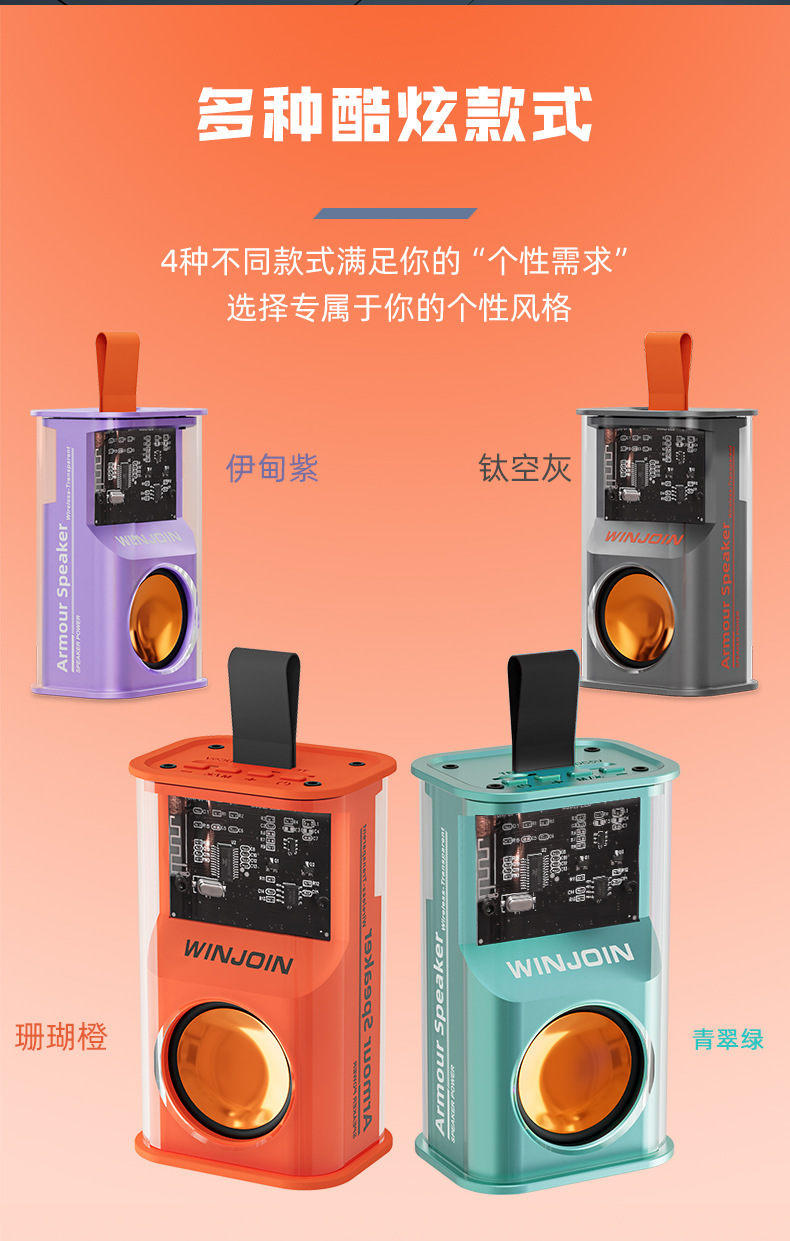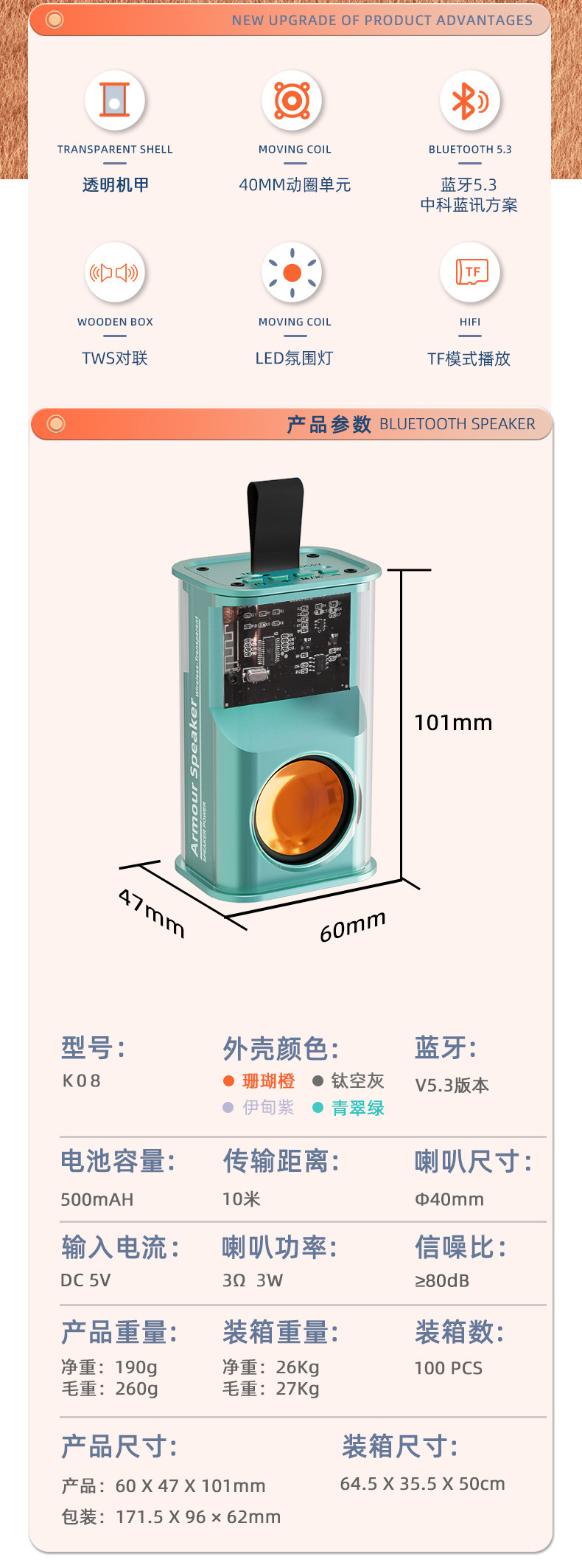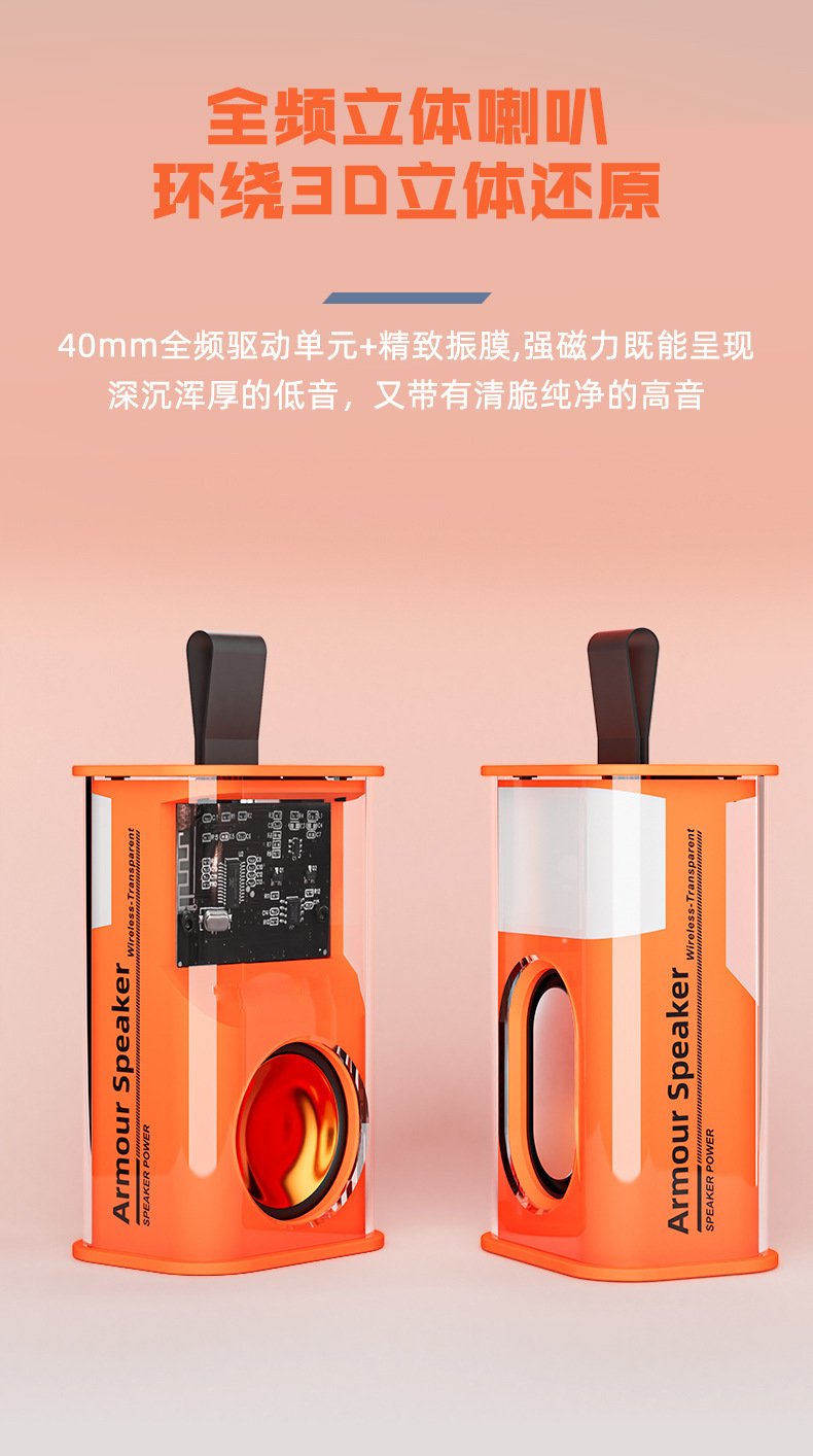 투명한 갑옷 스타일의 무선 블루투스 스피커 작은 강철 총 데스크탑 스피커 다채로운 서브 우퍼 휴대용 카드 스피커