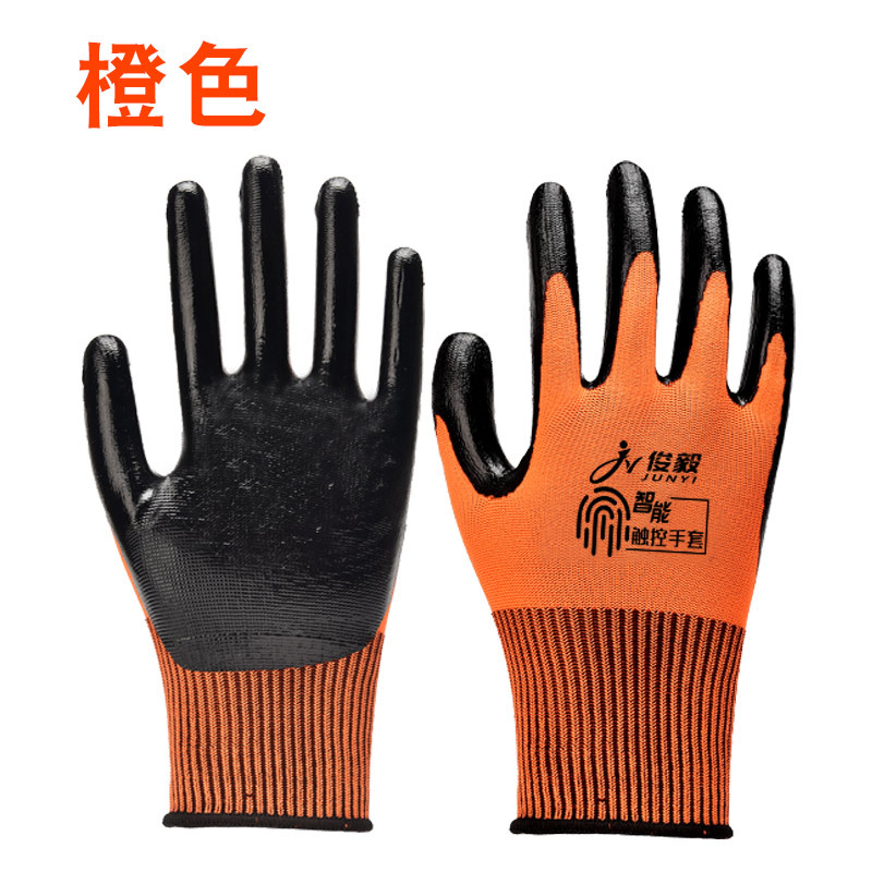 노동 보호 장갑 니트릴 담근 내마모성 터치 스크린 휴대 전화 정전기 방지 오일 방지 작업 택배 건설 현장 작업 장갑스토어 가기