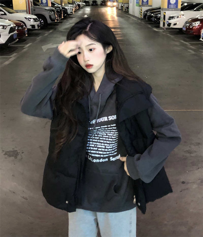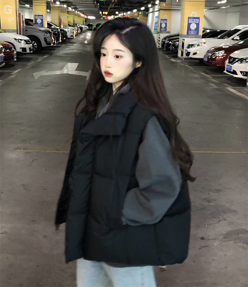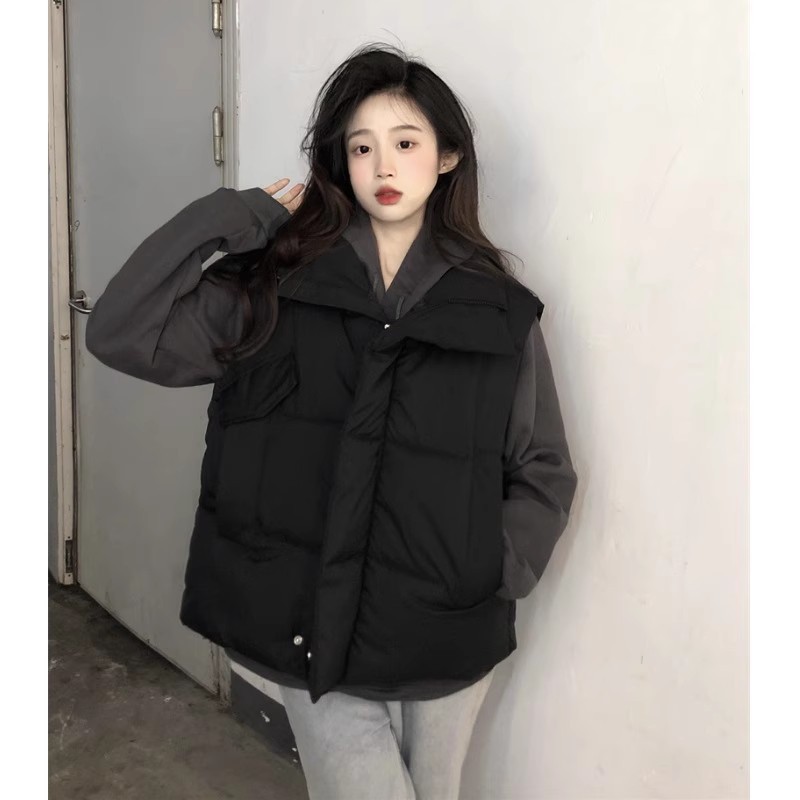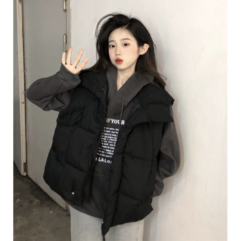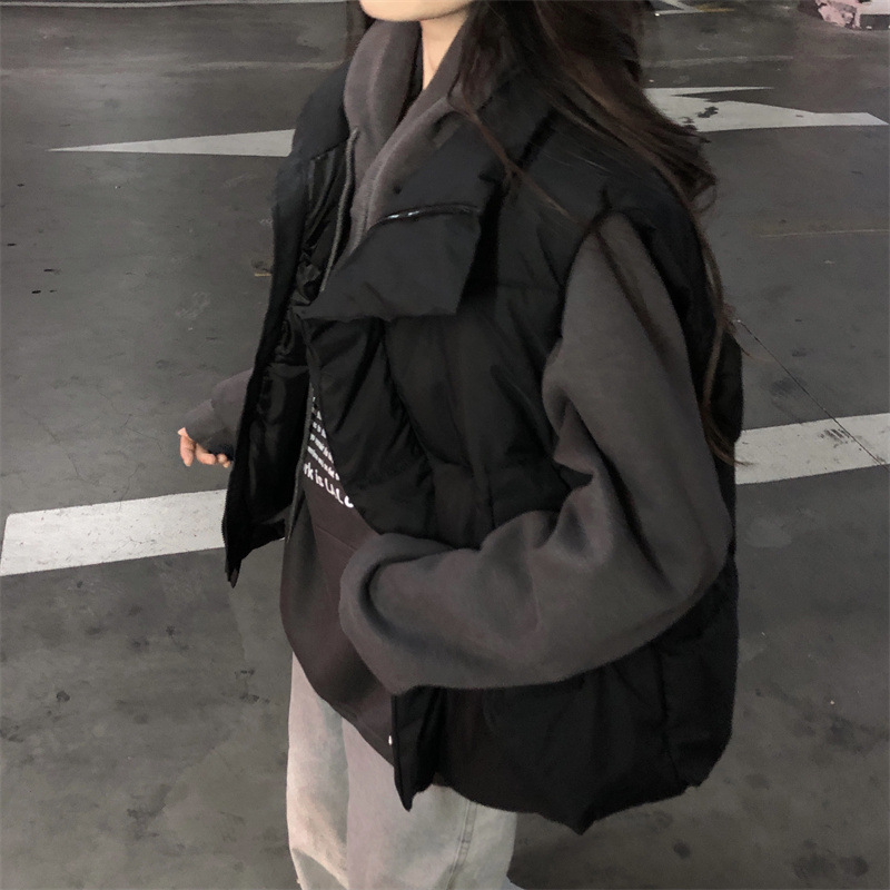 수직 칼라 스택 면화 재킷 면화 패딩 재킷 조끼 재킷 여성용 봄 가을 및 겨울 느슨한 대형 조끼 착용 조끼 조끼 조끼스토어 가기