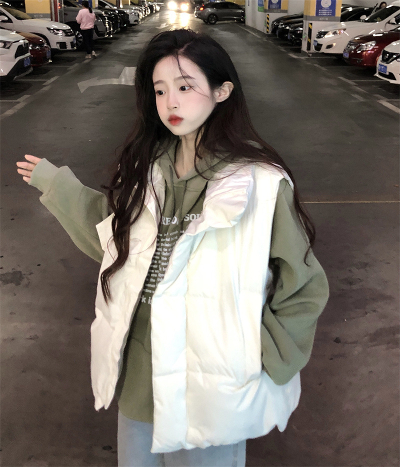 수직 칼라 스택 면화 재킷 면화 패딩 재킷 조끼 재킷 여성용 봄 가을 및 겨울 느슨한 대형 조끼 착용 조끼 조끼 조끼