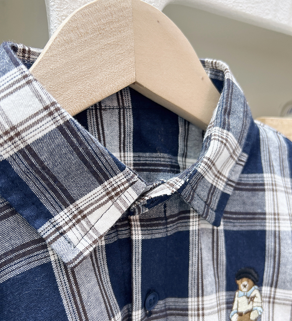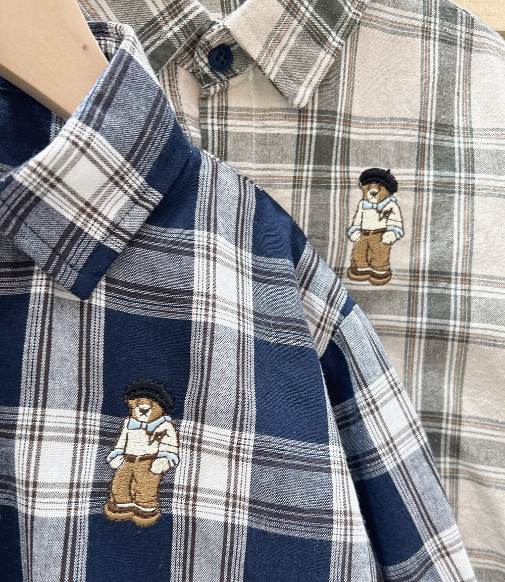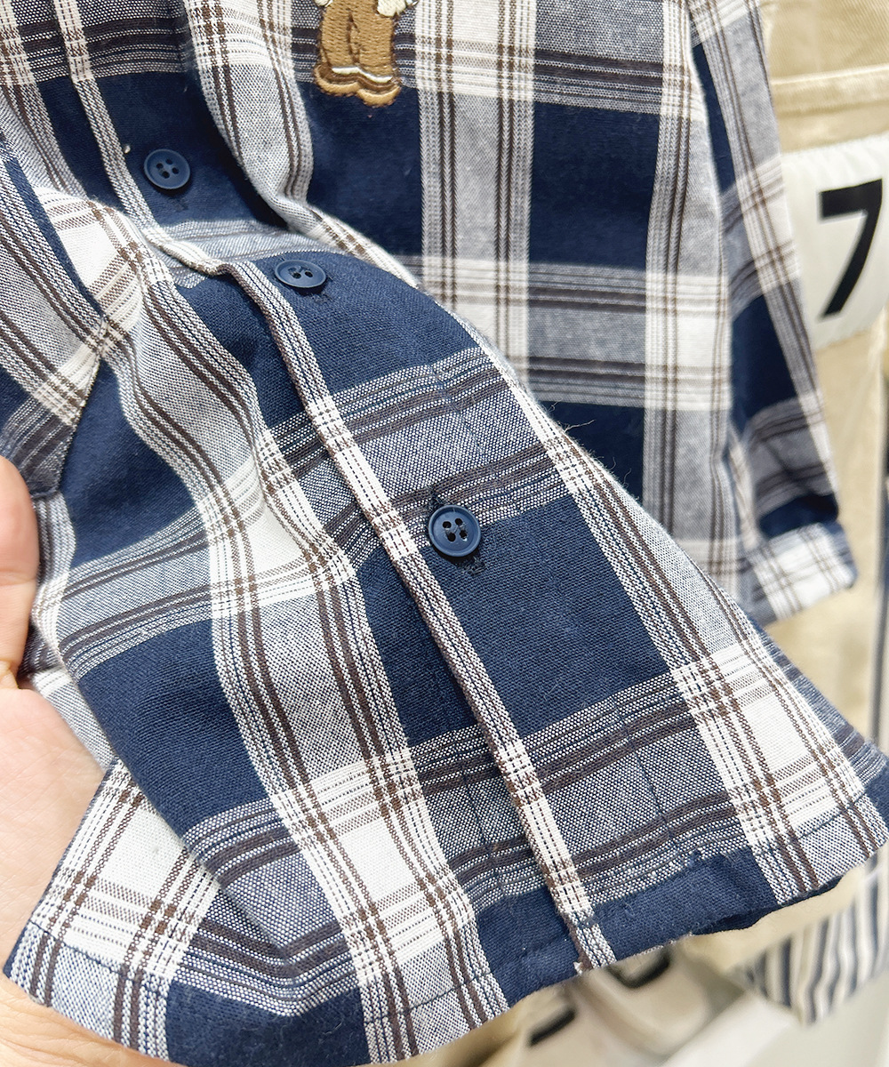 한국 스타일 격자 무늬 어린이 셔츠 서양식 아기 만화 옷깃 상단 유행 봄 가을 어린이 의류 소년의 긴 소매 셔츠스토어 가기