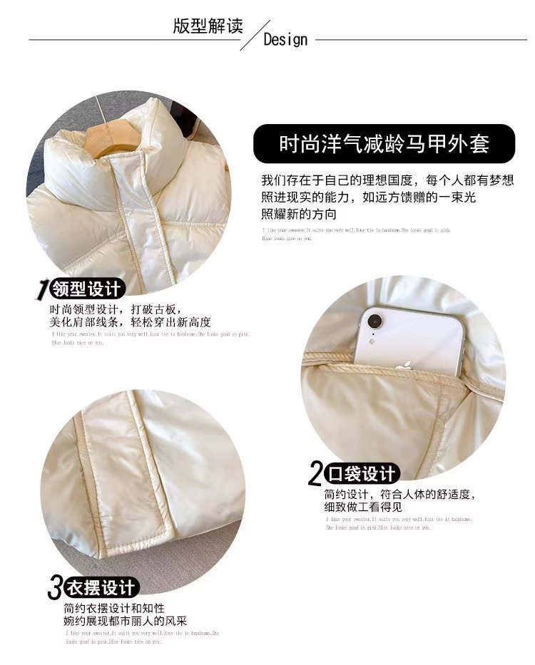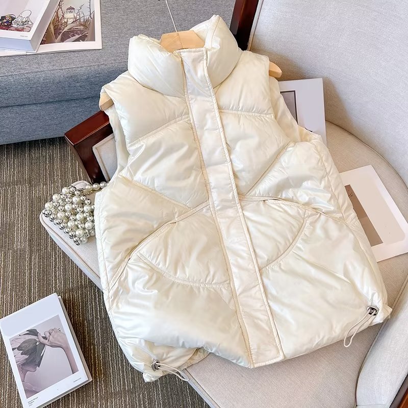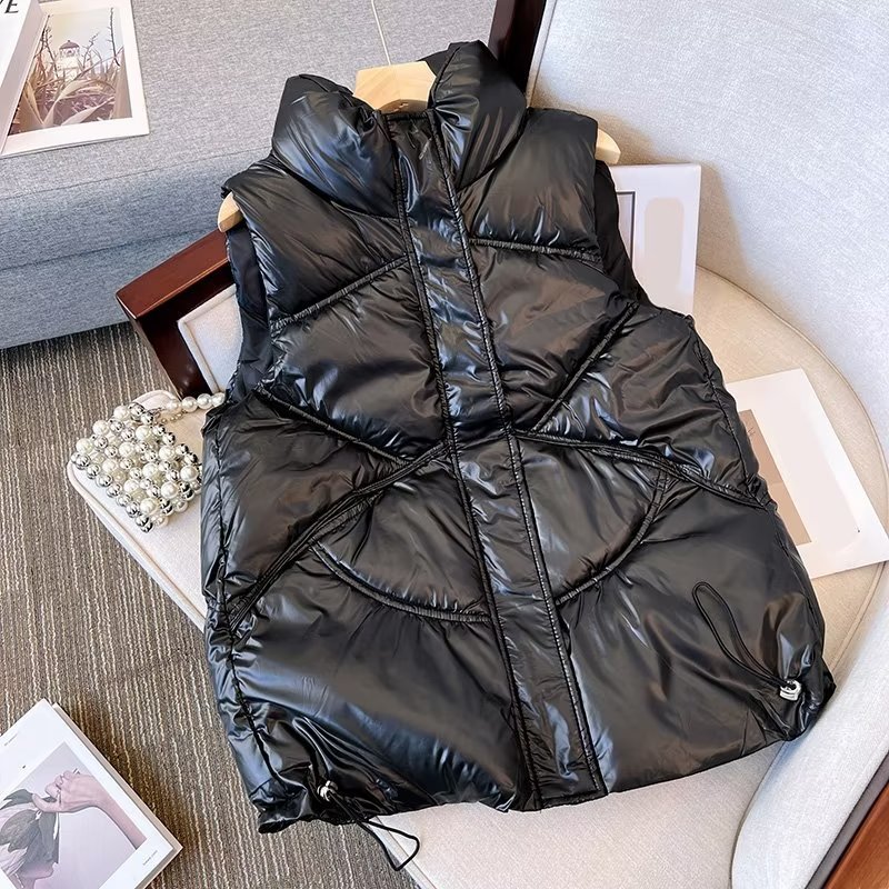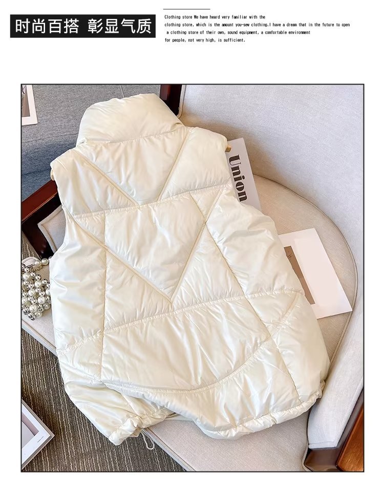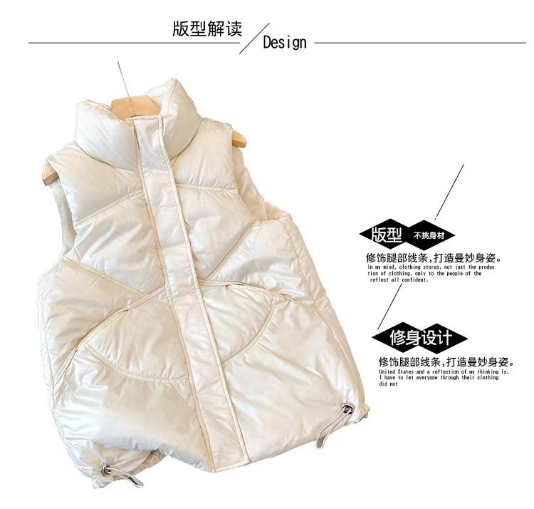 가을 겨울용 여아 다운 면 조끼, 한국식 플러스 벨벳 및 두꺼운 광택 중년 어린이 따뜻한 여성 캐주얼 조끼스토어 가기