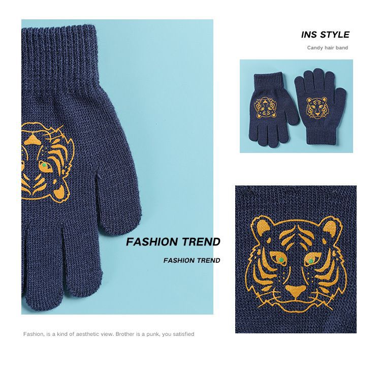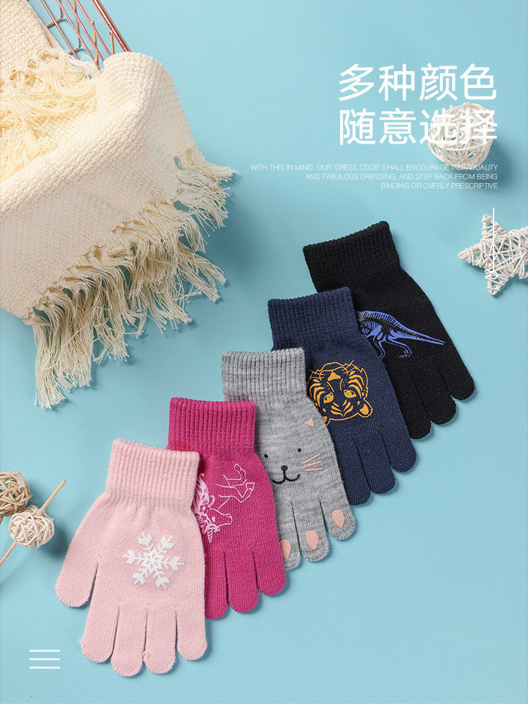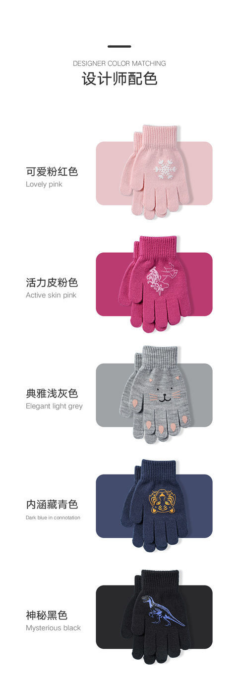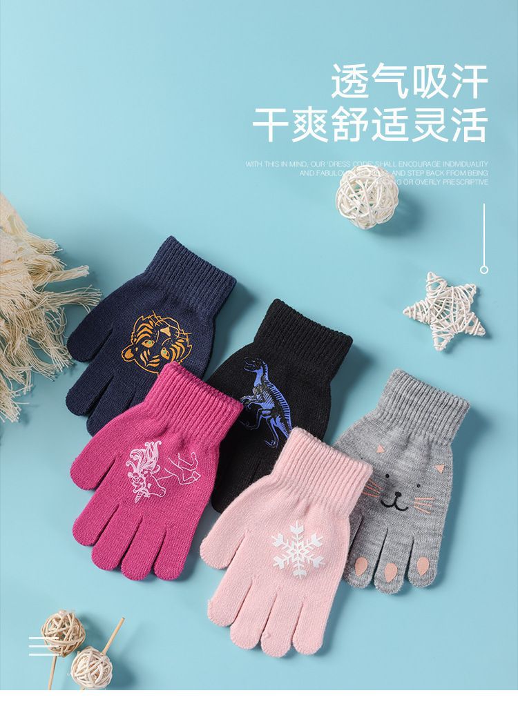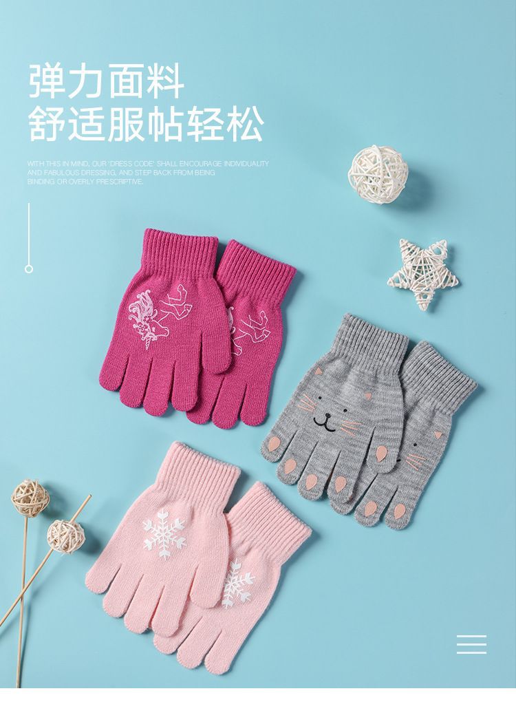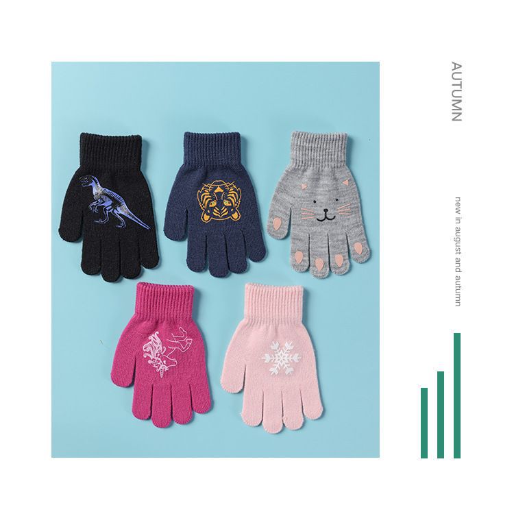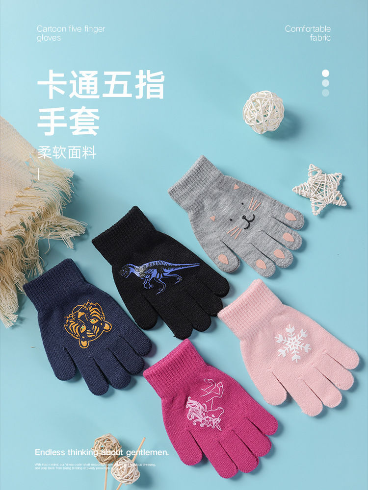 어린이 장갑 전체 손가락 겨울 다섯 손가락 울 따뜻한 냉장 만화 귀여운 소녀 초등학교 소년