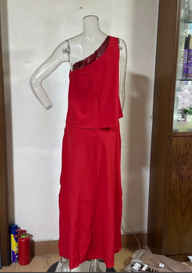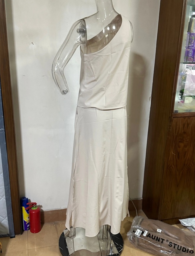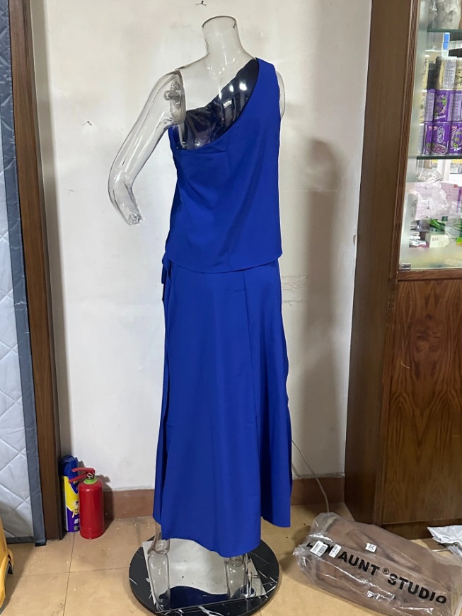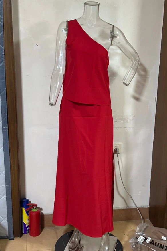 2023 여름 새로운 유럽과 미국의 아마존 국경 패션 솔리드 컬러 슬란 트 칼라 민소매 캐주얼 높은 허리 스커트 세트