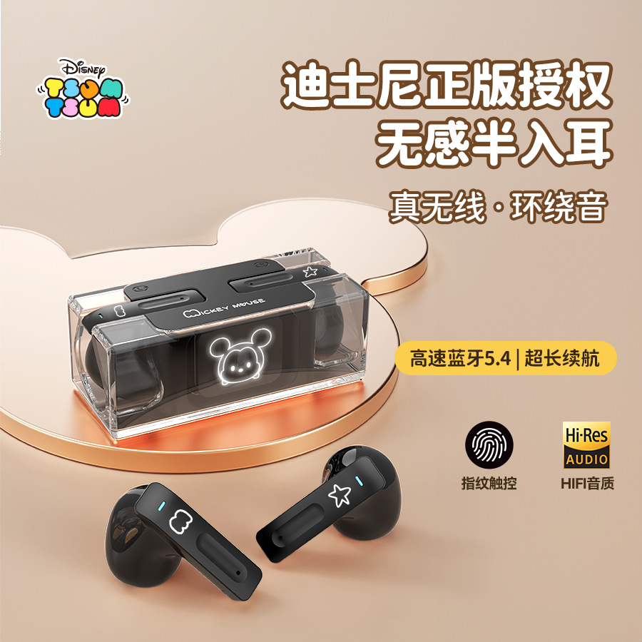새로운 디즈니 DN03 블루투스 헤드셋 반투명 디자인 HIFI 음질 소음 감소 소녀 유니버설 TWS 헤드셋스토어 가기