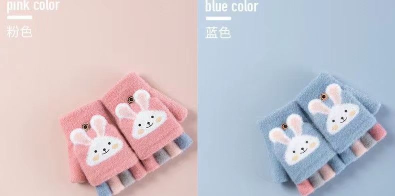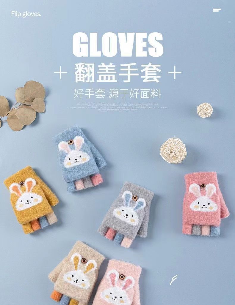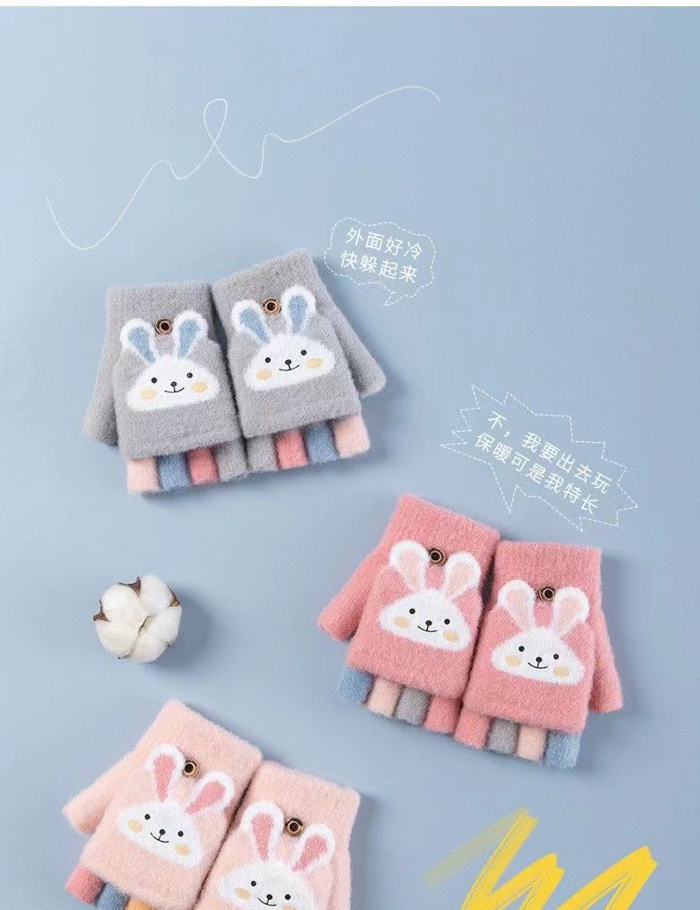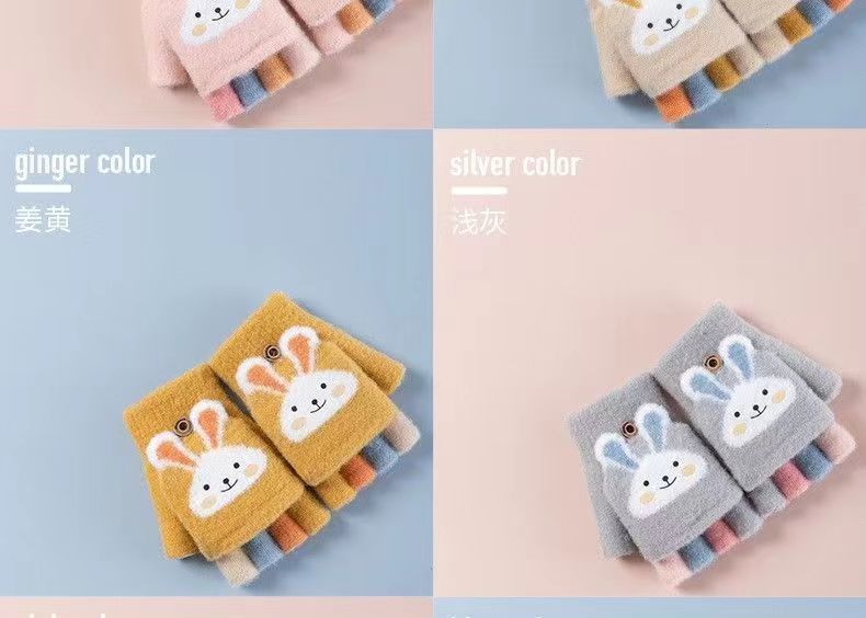 어린이 장갑 4 ~ 10 세 장갑 손가락 누출 손가락 없는 겨울 방한성 두껍게 기모 어린이 다섯 손가락 뒤집기 장갑스토어 가기