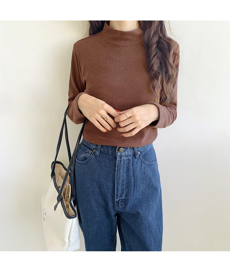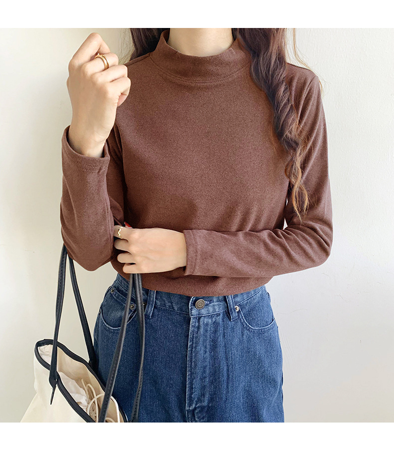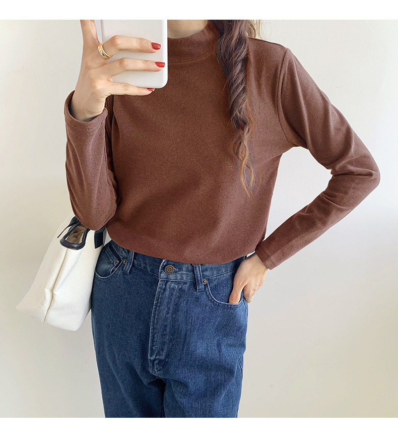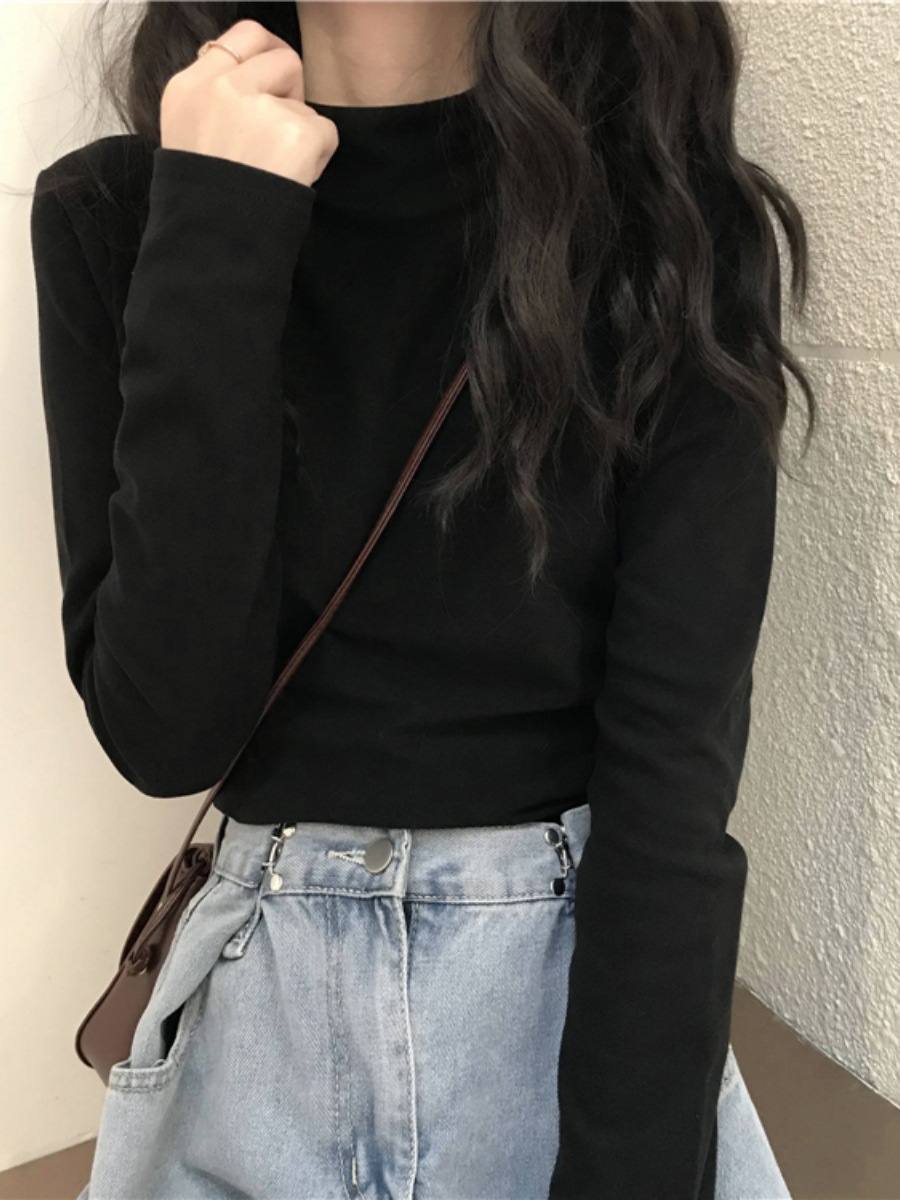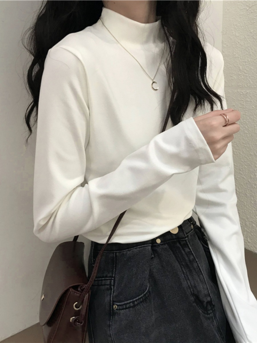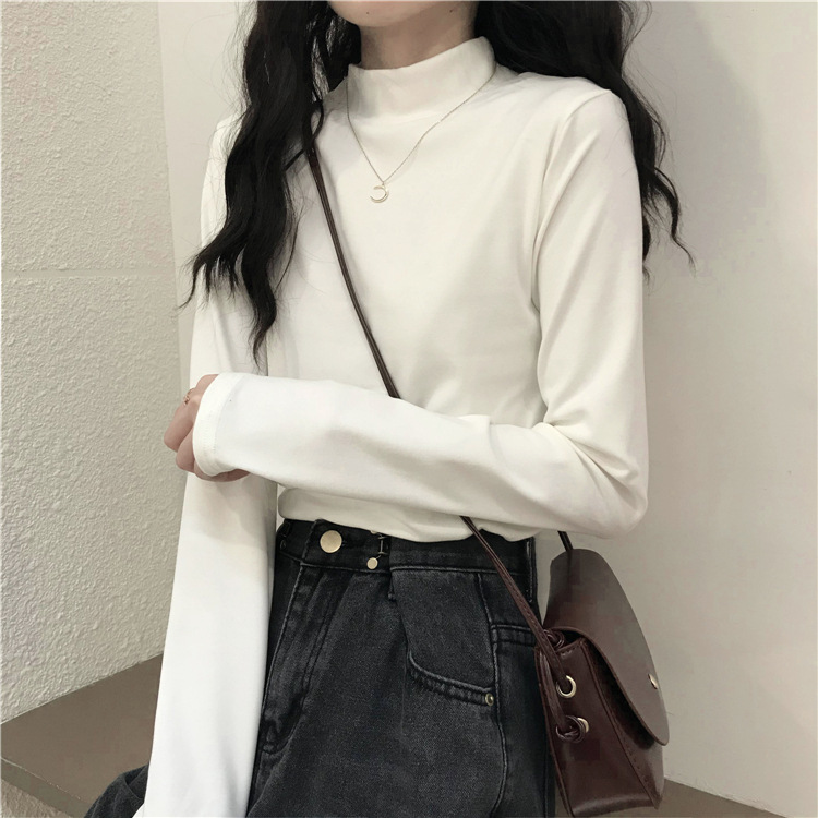여성 하프 터틀넥 버팅 셔츠 가을과 겨울 2023 새로운 기모 두꺼운 내복 슬림 슬리밍 긴 소매 티셔츠 탑스토어 가기