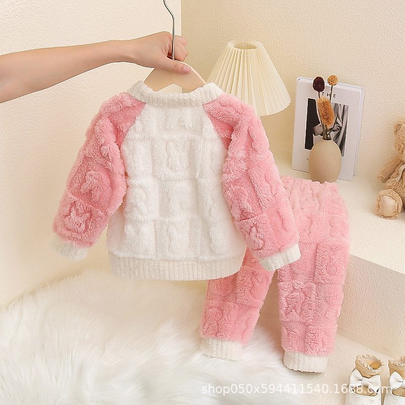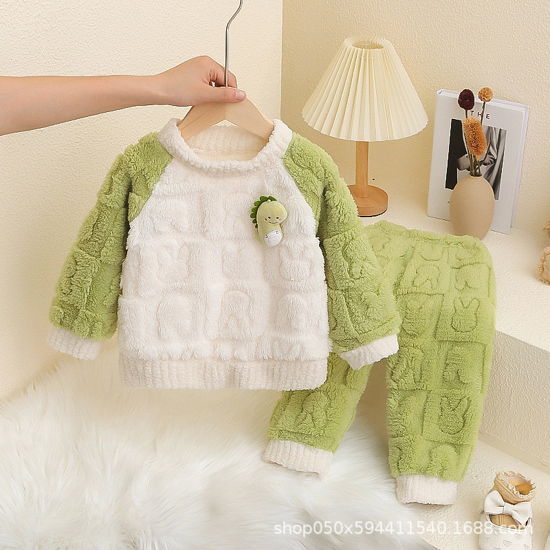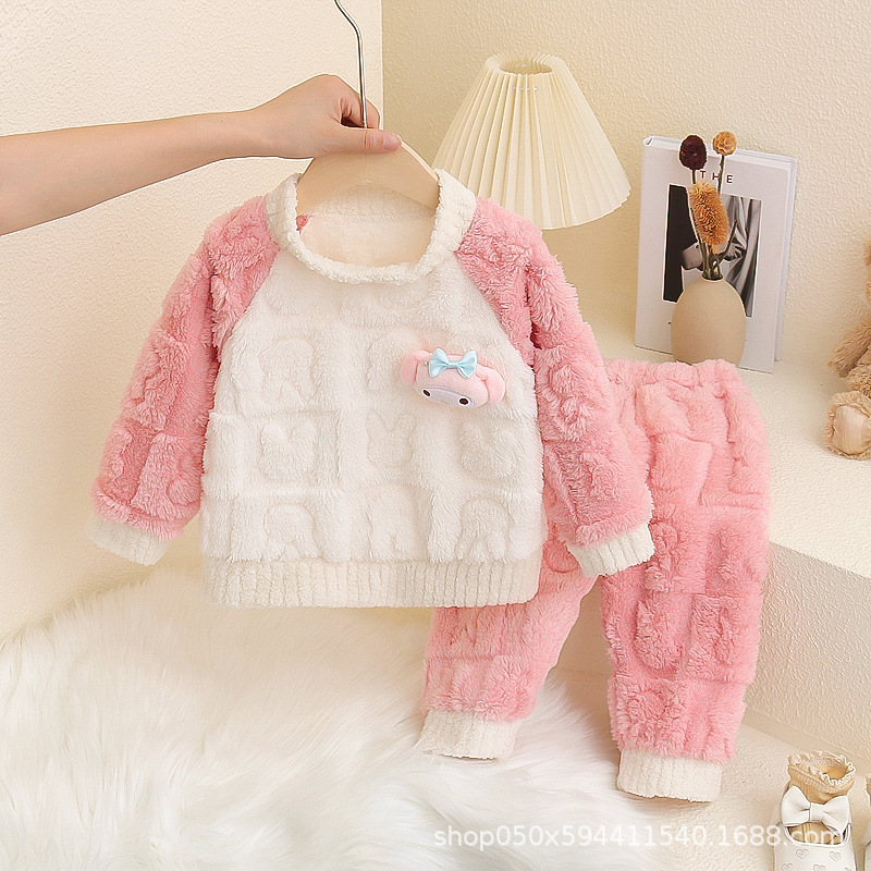 캔디 컬러 소녀의 겨울 잠옷 플란넬 세트 어린이 아기 소년 만화 기모 따뜻한 가정복 패션