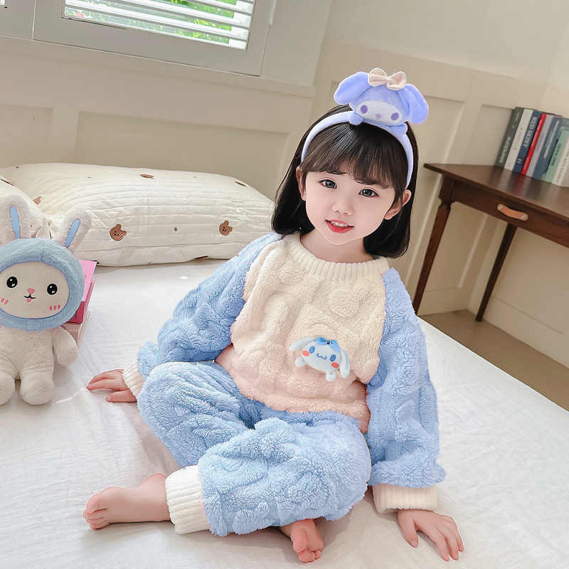 캔디 컬러 소녀의 겨울 잠옷 플란넬 세트 어린이 아기 소년 만화 기모 따뜻한 가정복 패션스토어 가기