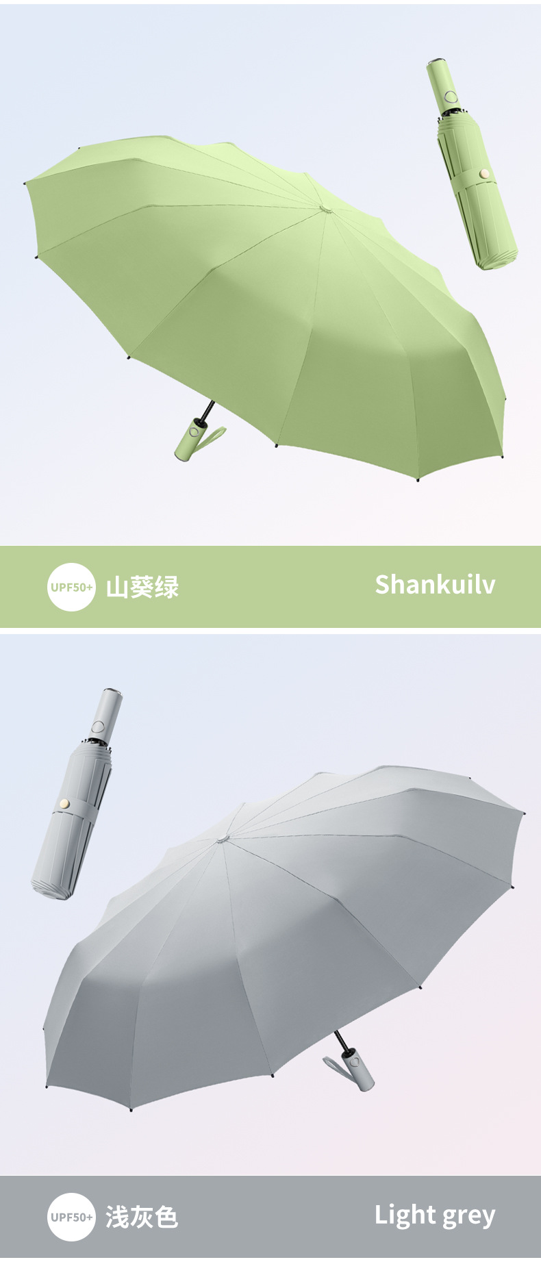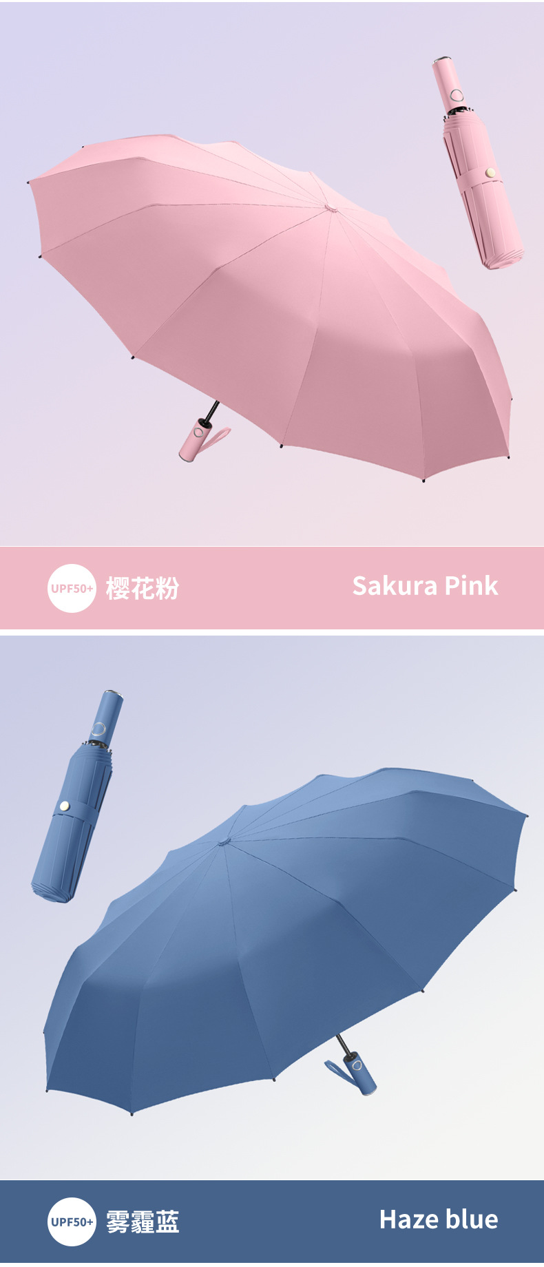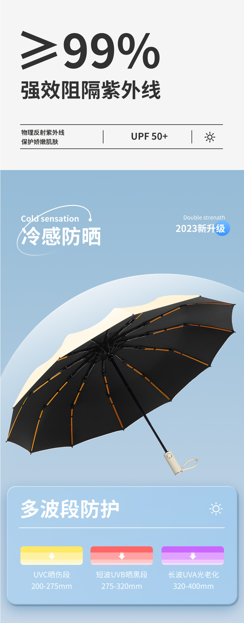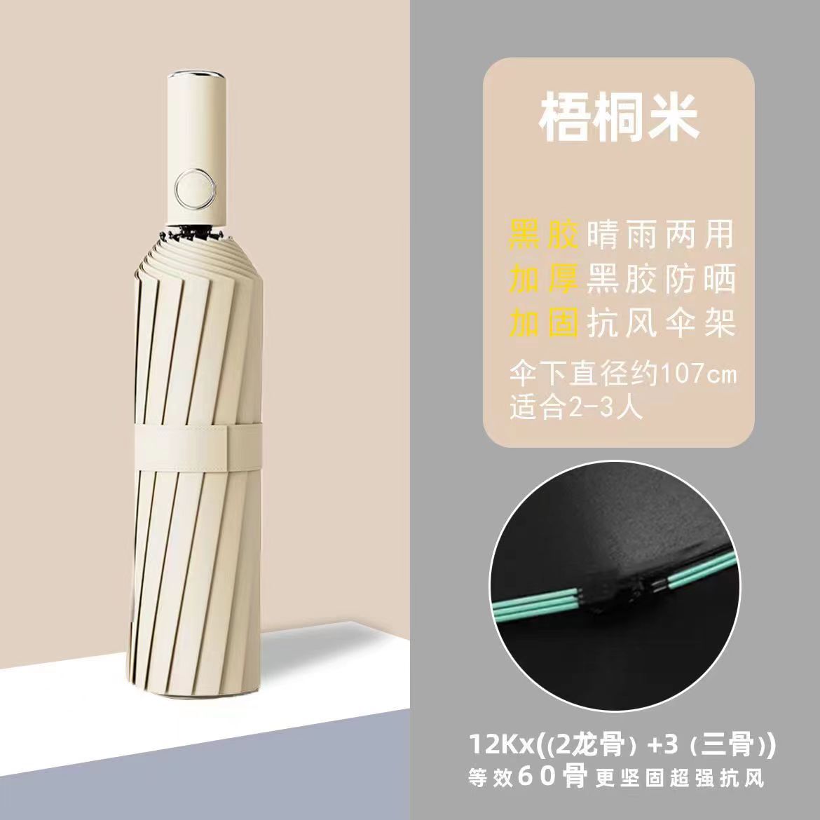 • [자동 모델 업그레이드] 12 뼈 검은 접착제 햇볕이 잘 드는 우산 우통 쌀