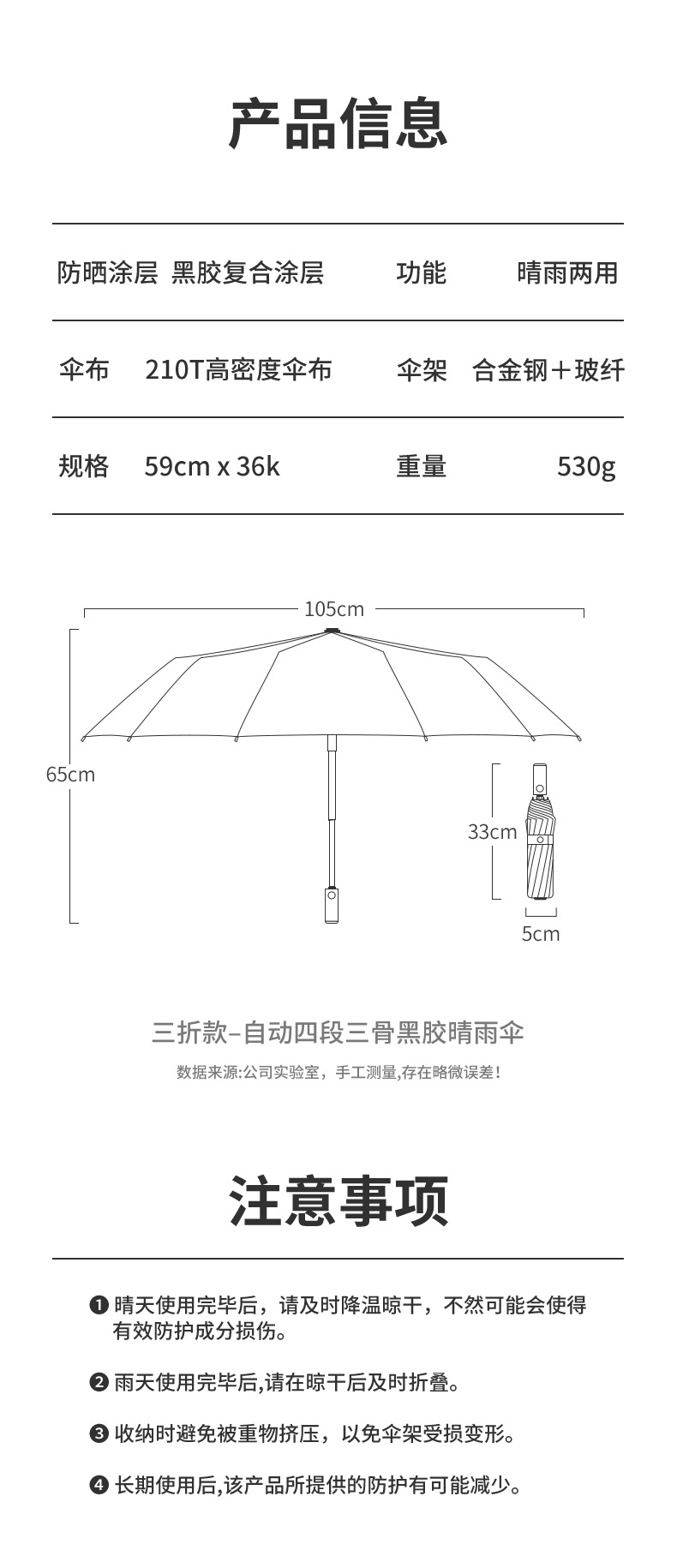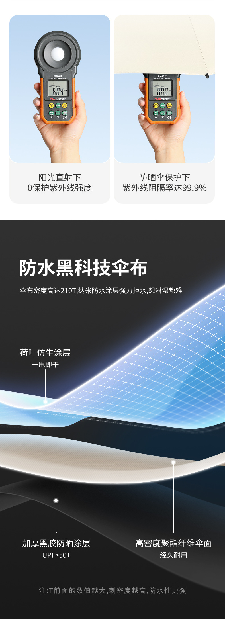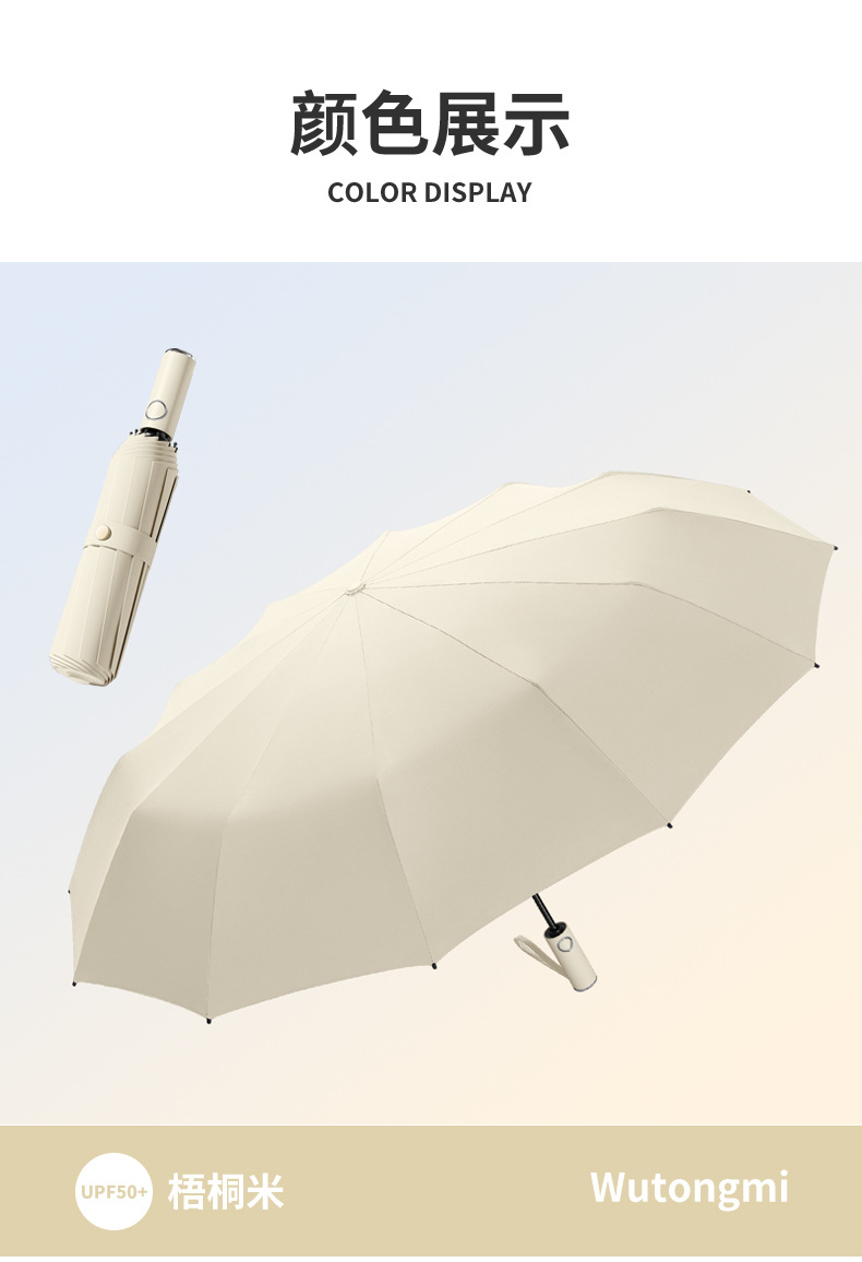 • [자동 모델 업그레이드] 10 개의 뼈 검은 접착제 햇볕이 잘 드는 우산 우통 쌀