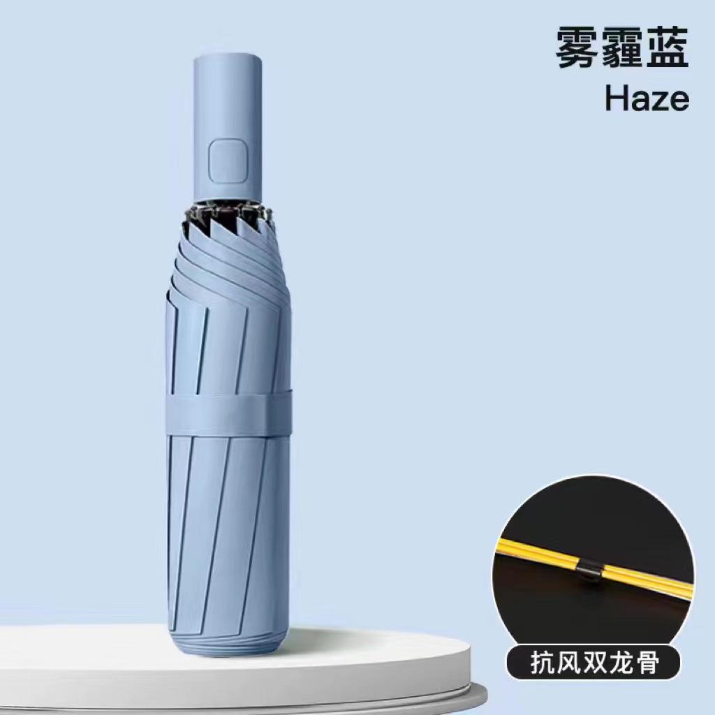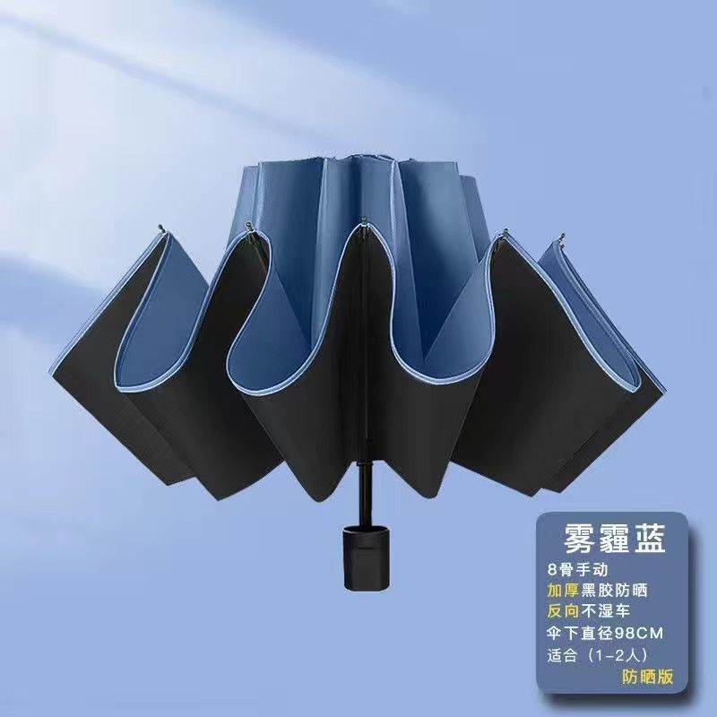 • [자동] 8 뼈 검은 접착제 태양 우산 안개 블루
