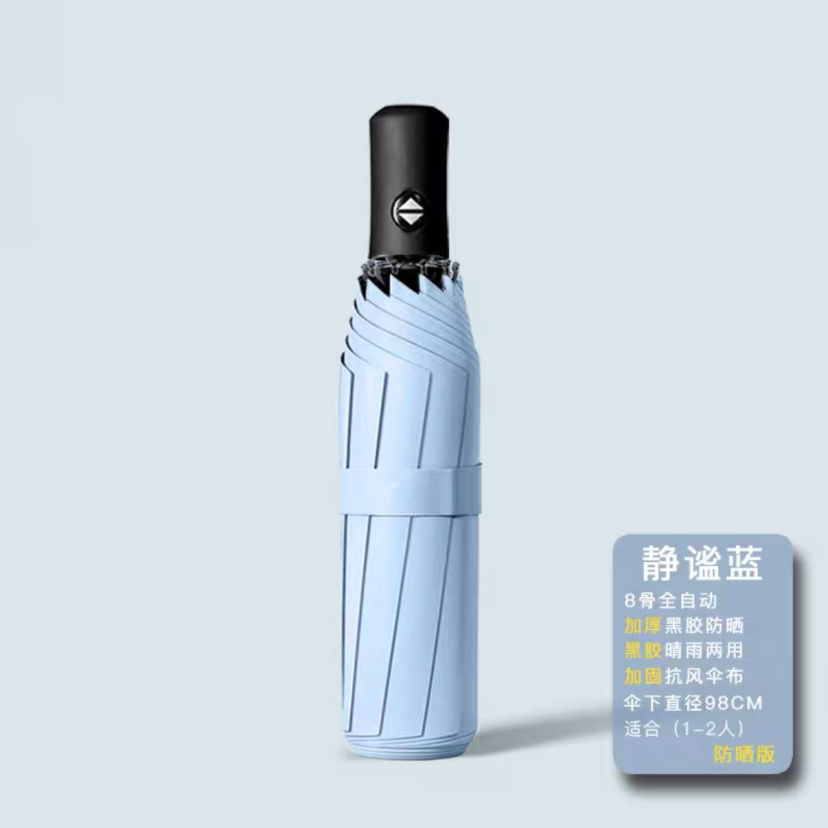 • [자동] 8 뼈 검은 접착제 태양 우산 조용한 블루
