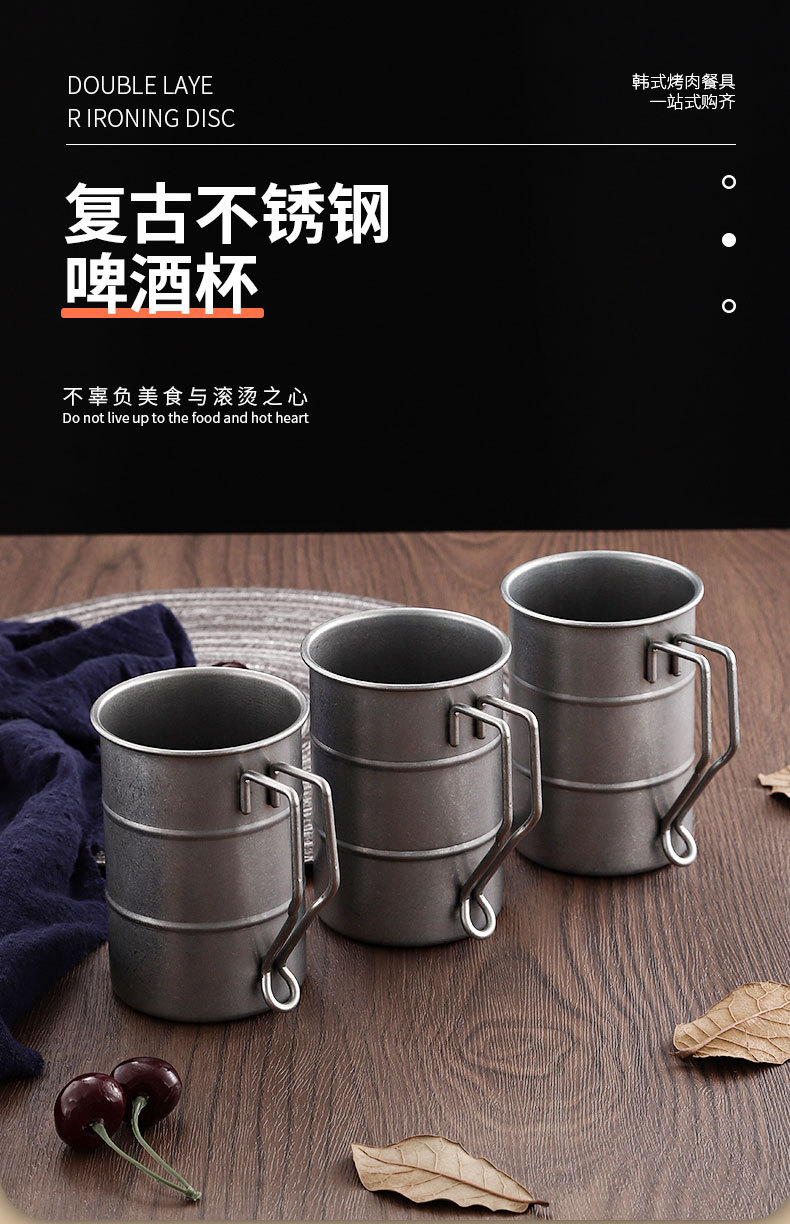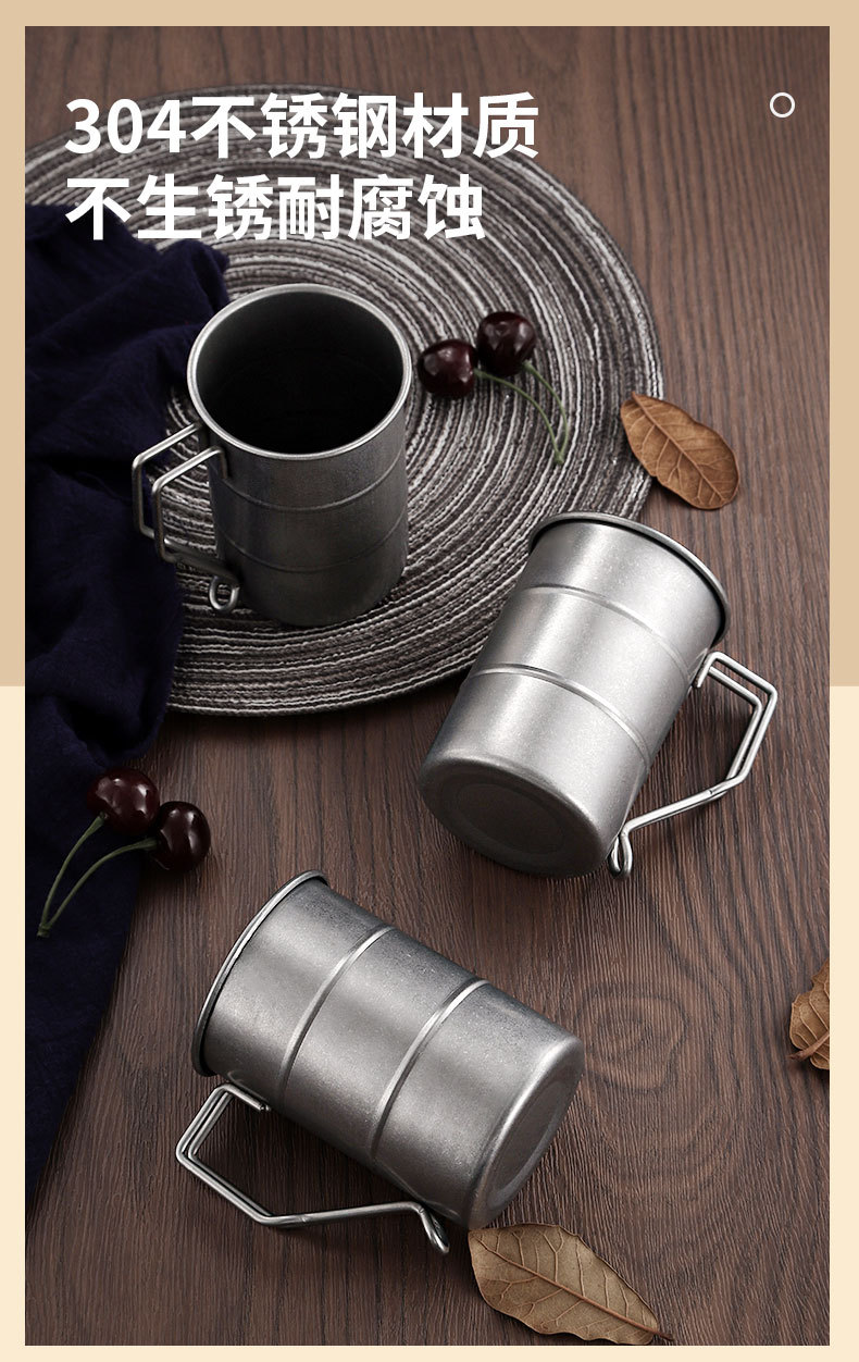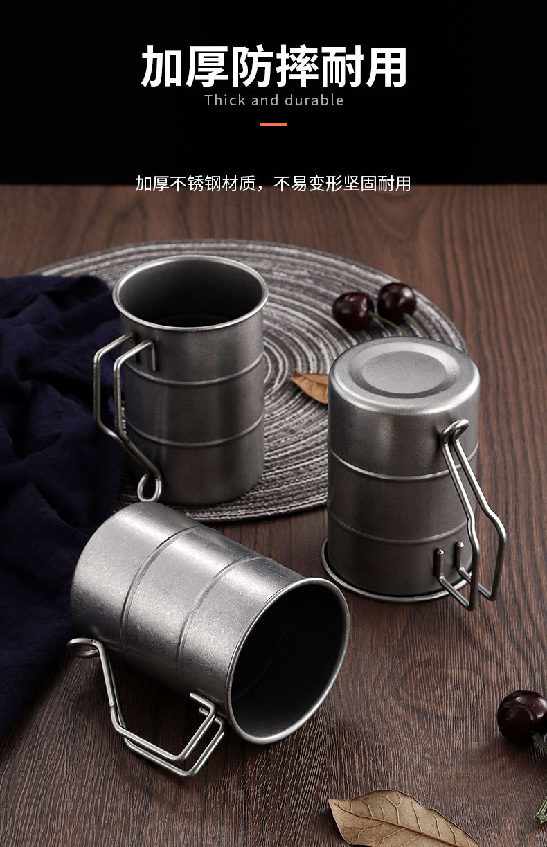 빈티지 산업 스타일 맥주 컵 304 스테인레스 스틸 머그잔 커피 물 컵 고민 야외 캠핑 나무 배럴 컵