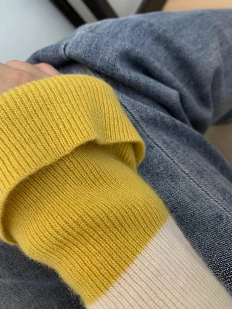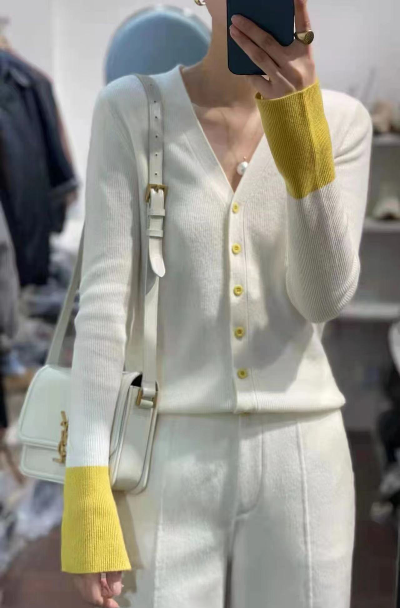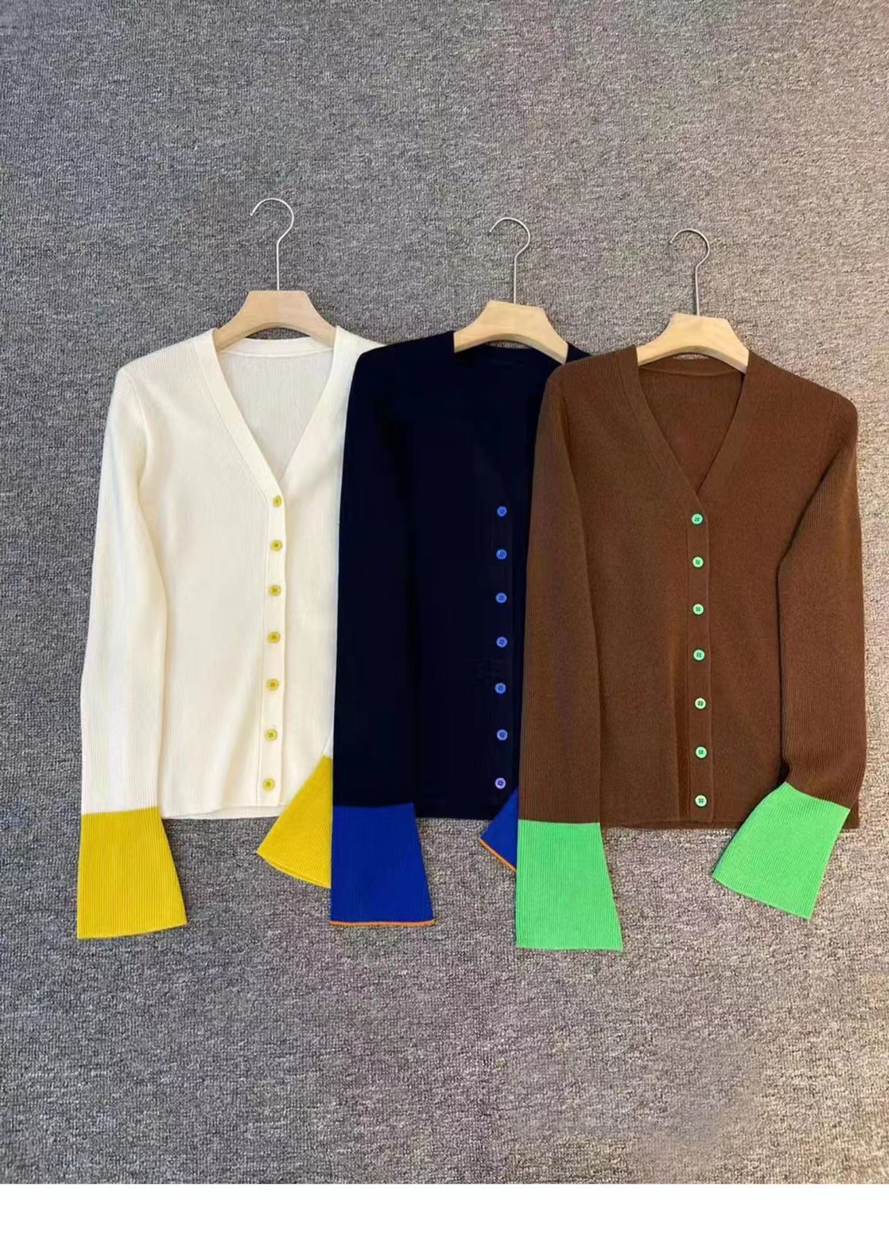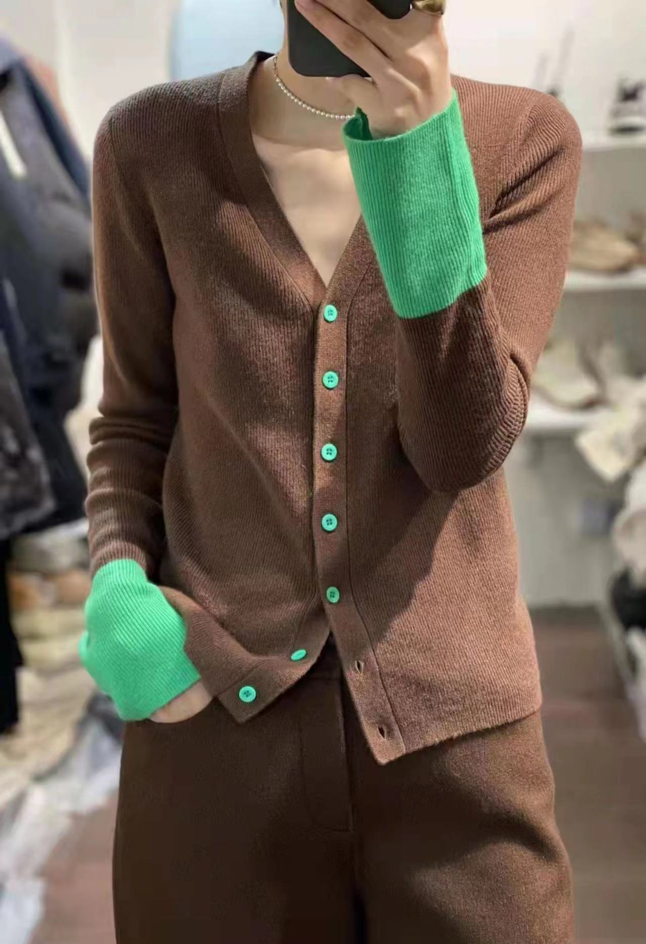 가을과 겨울 디자인 감각 틈새 시대 감소 대비 컬러 스티칭 니트 카디건 여성용 V-넥 울 스웨터 코트 겉옷