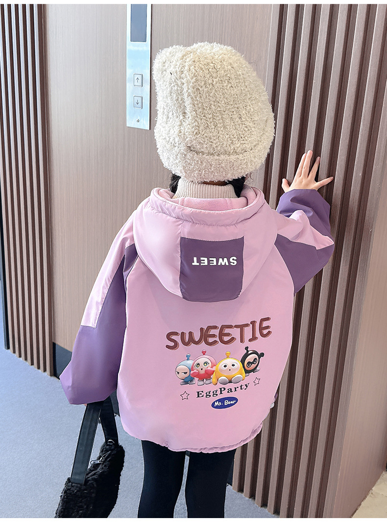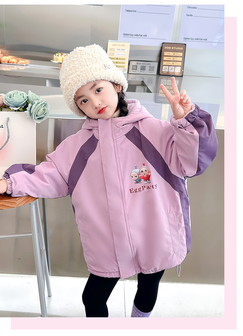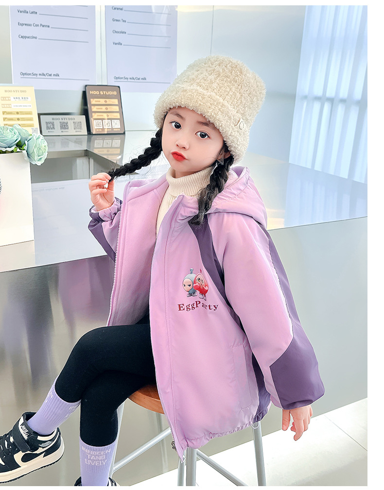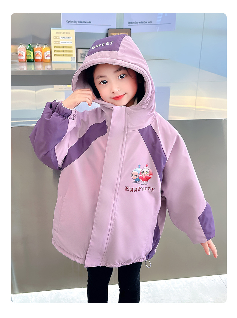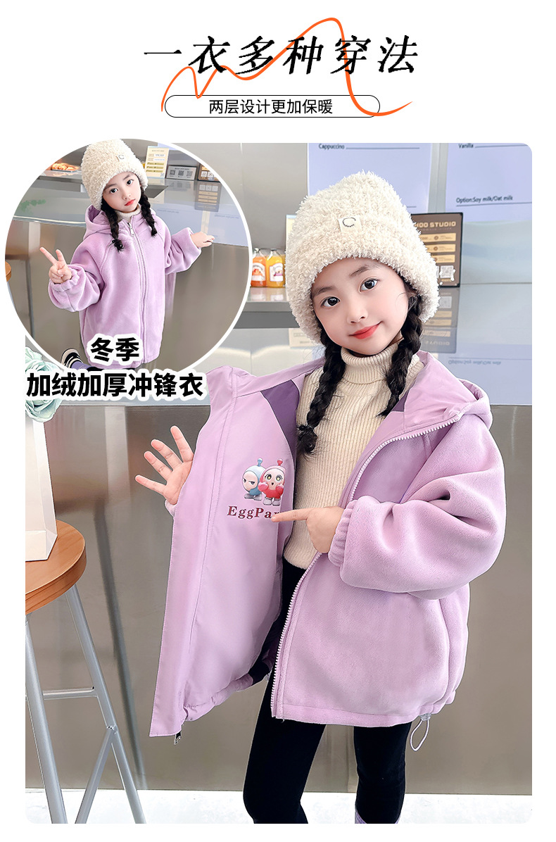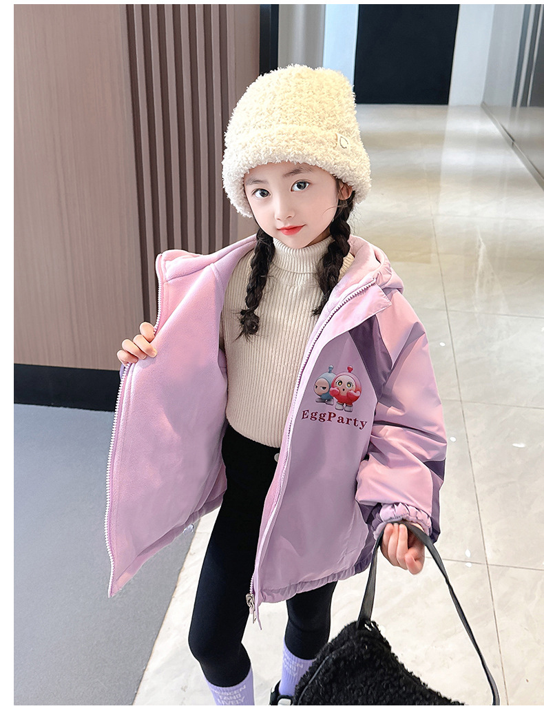 어린이 겨울 의류 기모 두껍게 자켓 소녀의 3 가지 방지 직물 어린이 극지 양털 재킷 만화 계란