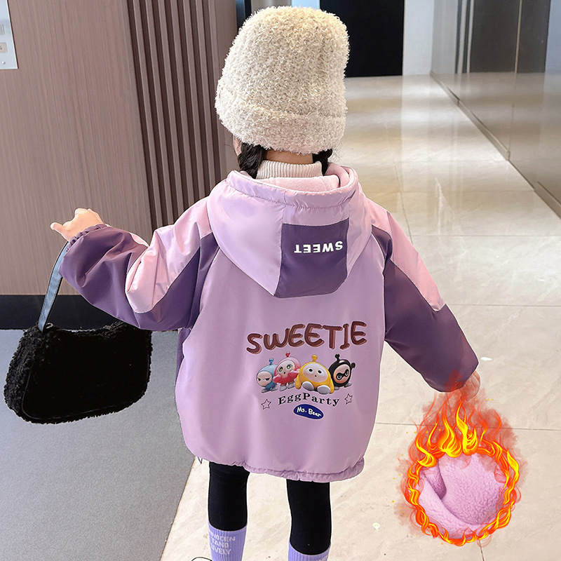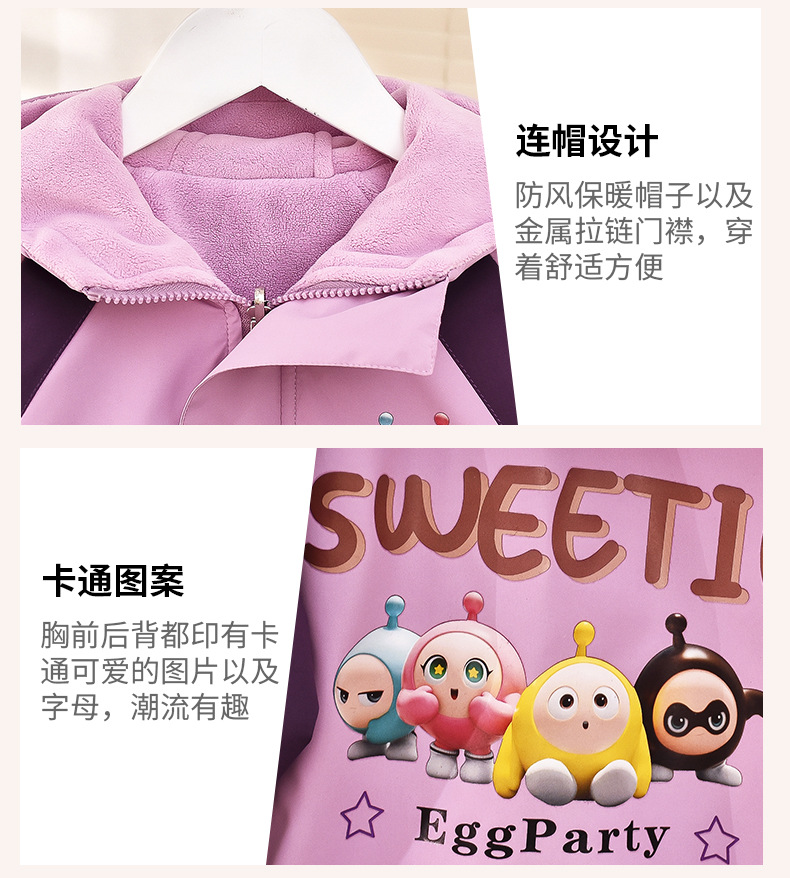 어린이 겨울 의류 기모 두껍게 자켓 소녀의 3 가지 방지 직물 어린이 극지 양털 재킷 만화 계란스토어 가기