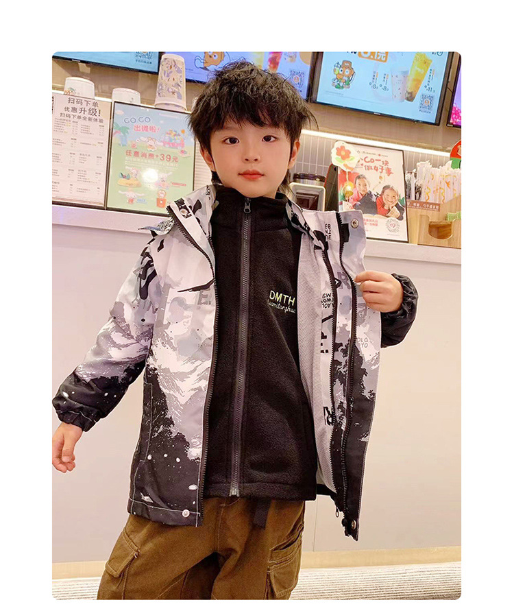 소년의 봄과 가을 옷 어린이 3 대 1 재킷 2024 새로운 탈착식 윈드 브레이커 탑 트렌디 투피스 세트스토어 가기