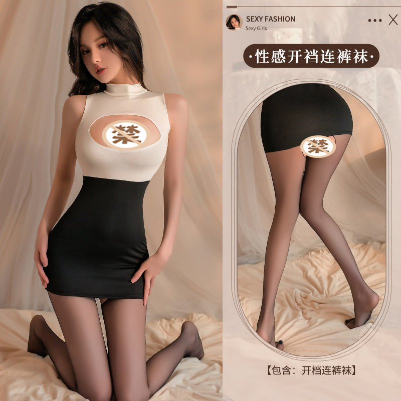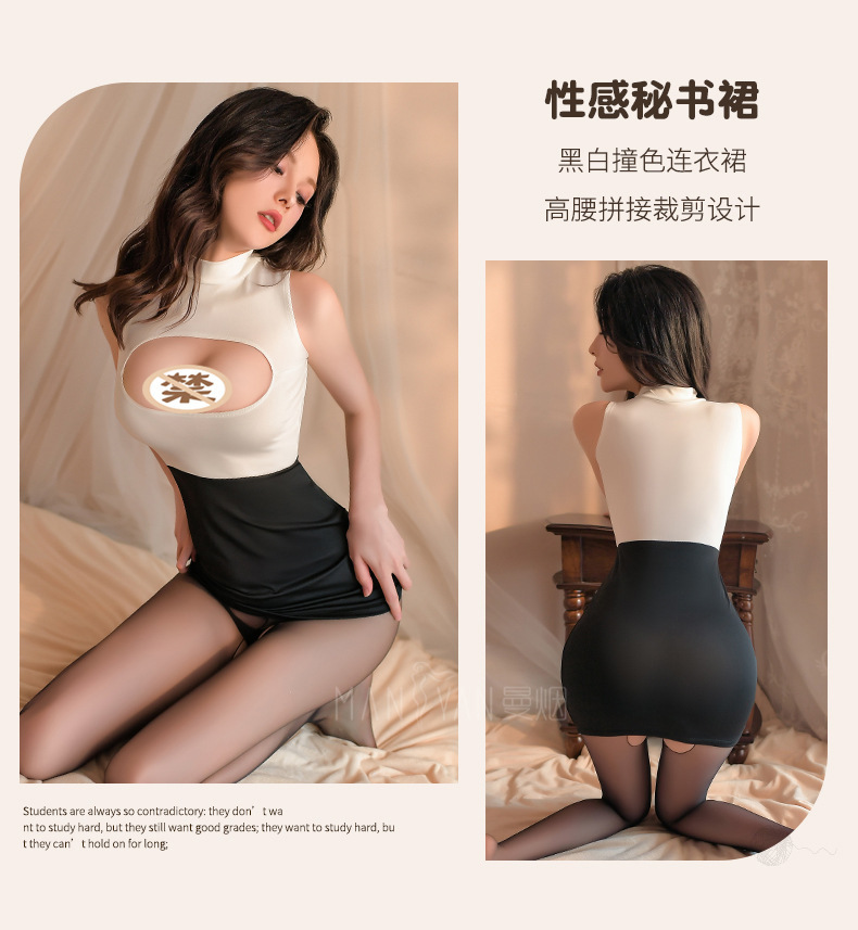Manyan 섹시한 란제리 섹시한 스탠드 칼라 중공 높은 허리 스티칭 칼집 전문 비서 유니폼 세트 9149스토어 가기