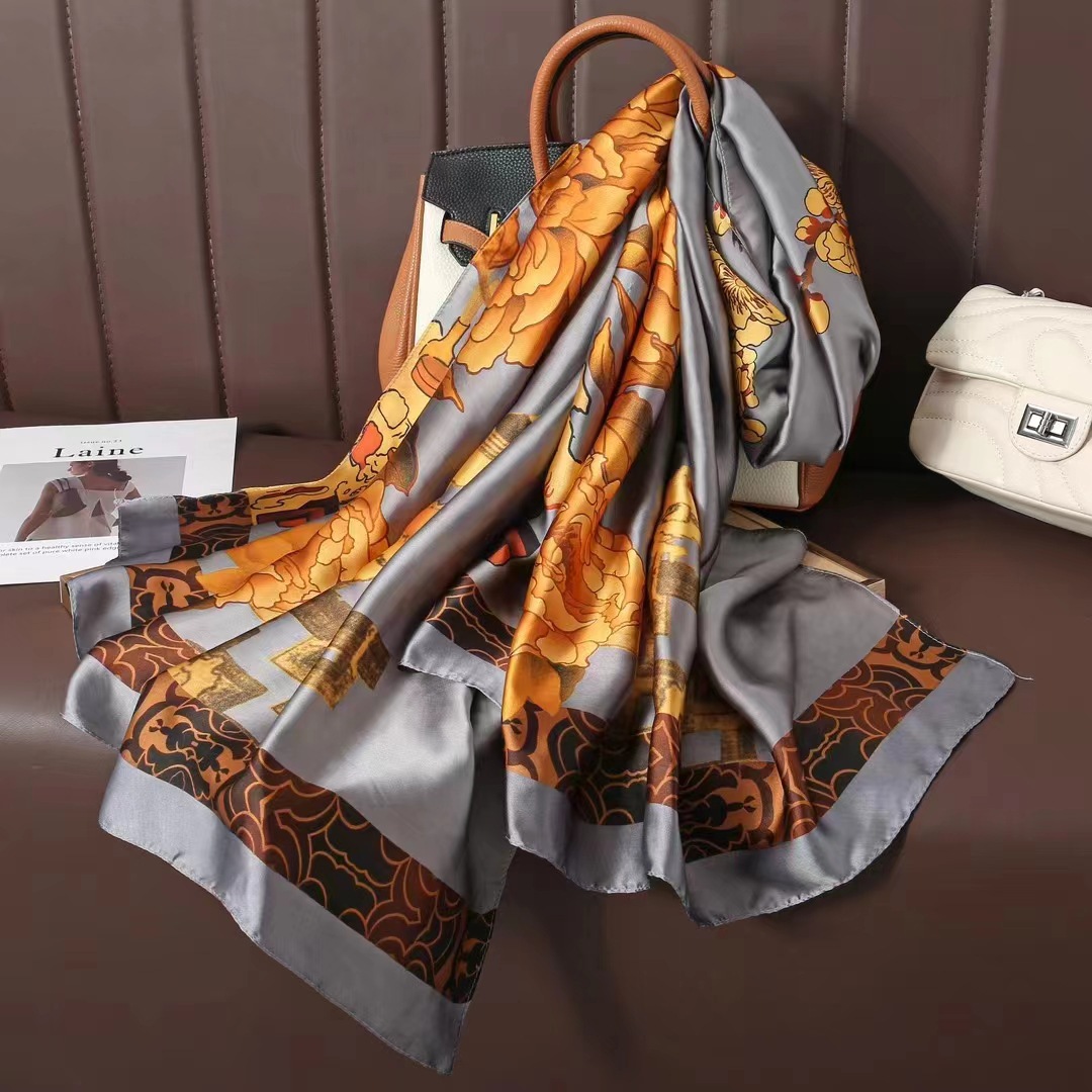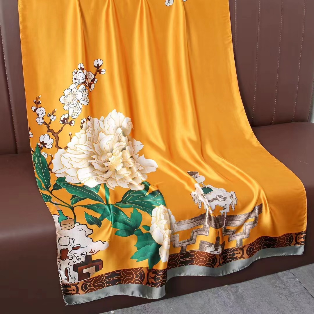 레트로 예술적 모란 꽃 인쇄 실크 스카프 브로케이드 새틴 긴 스카프 우아한 우아한 여성의 국가 스타일 목도리