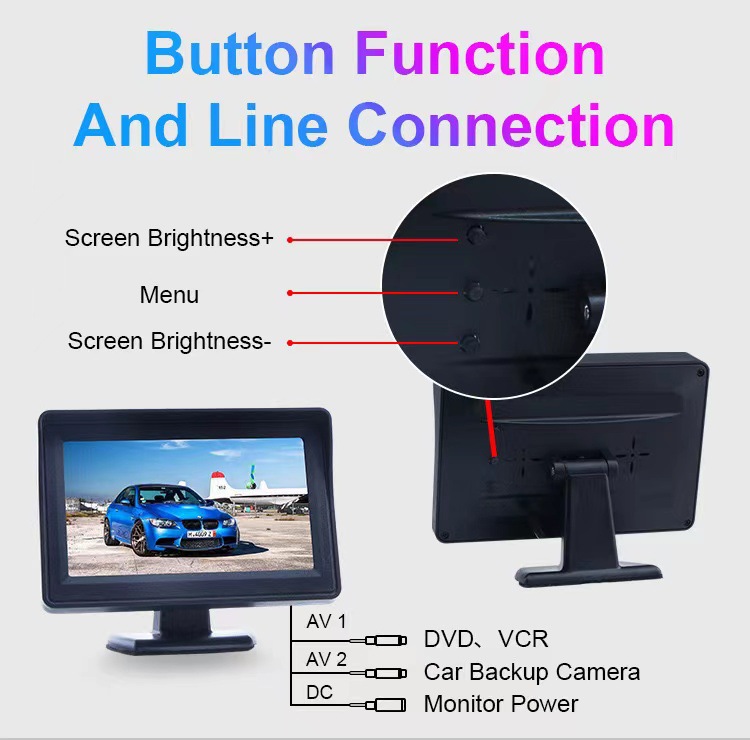 자동차 HD 자동차 모니터 4.3 인치 5 인치 7 인치 데스크탑 접이식 실버 가장자리 반전 이미지 전체 세트