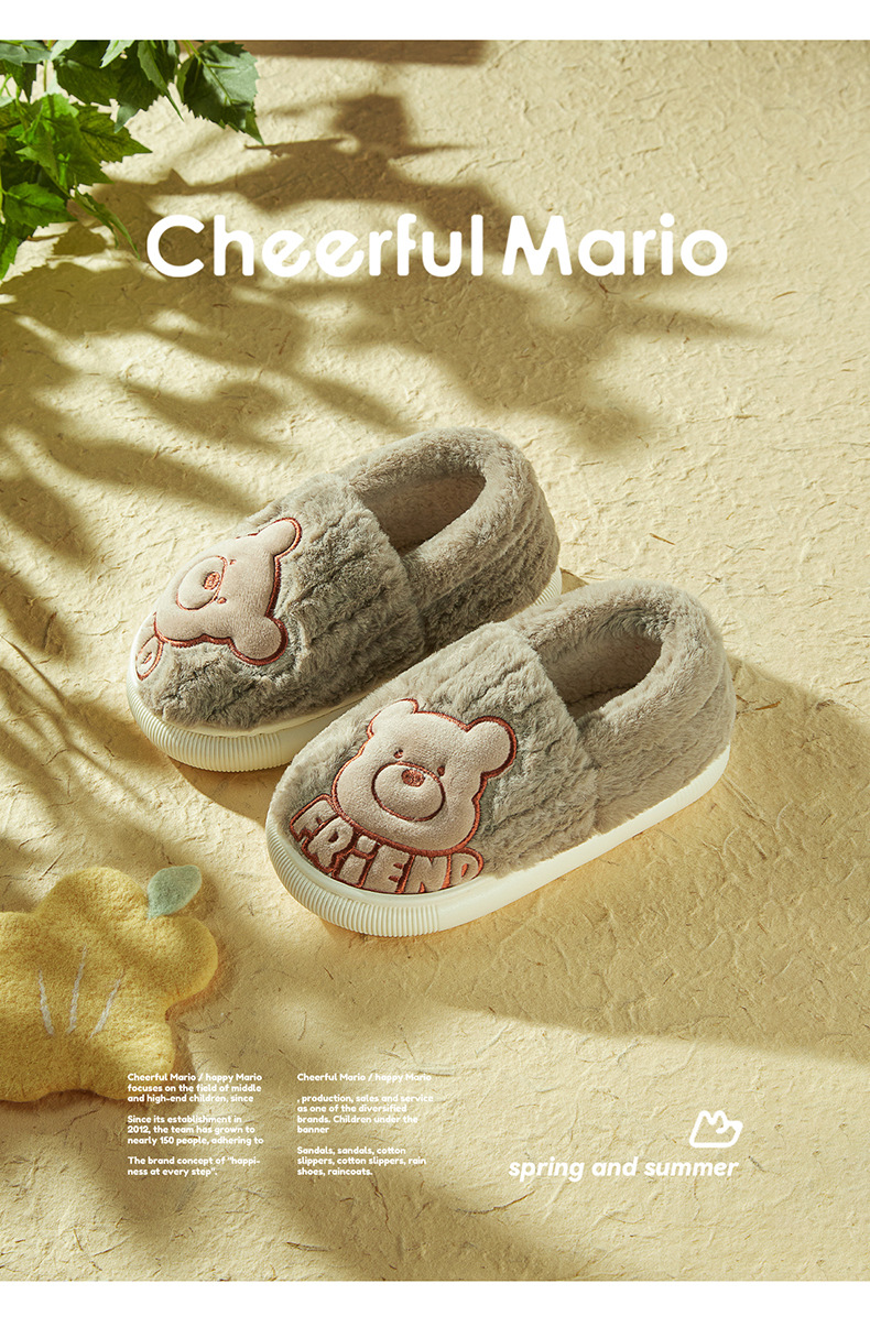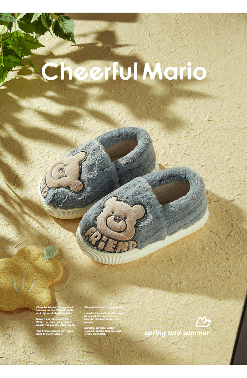 해피 메리 어린이 면 슬리퍼 소년의 겨울 소년의 아기 면화 신발 가방 힐 중간 및 큰 어린이 실내 홈 슬리퍼