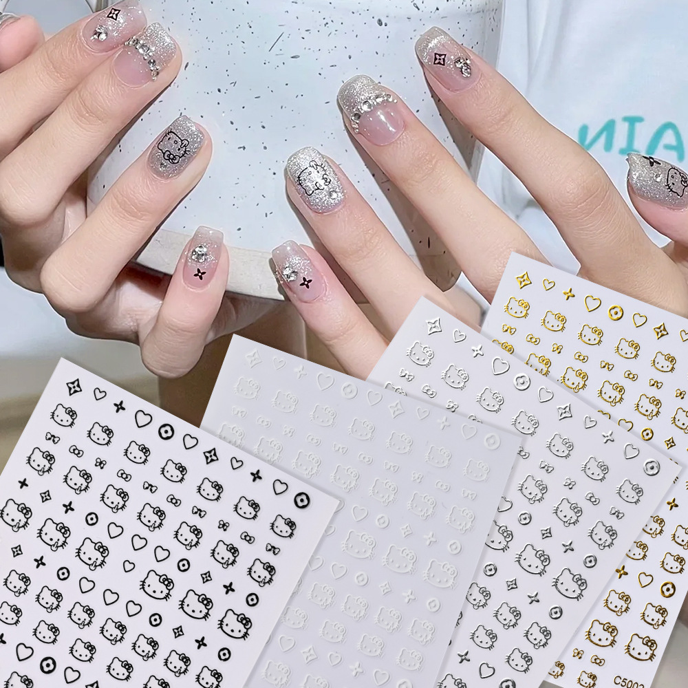만화 귀여운 헬로 키티 네일 아트 스티커 3D 접착제 KT 고양이 접착 네일 아트 장식 네일 아트 스티커스토어 가기