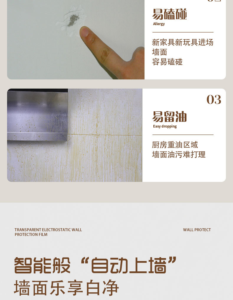 가정용 벽 정전기 방습 방지 더러운 흰색 벽 보호 필름 도매 투명 벽 스티커 주방 스티커 방수 및 방유
