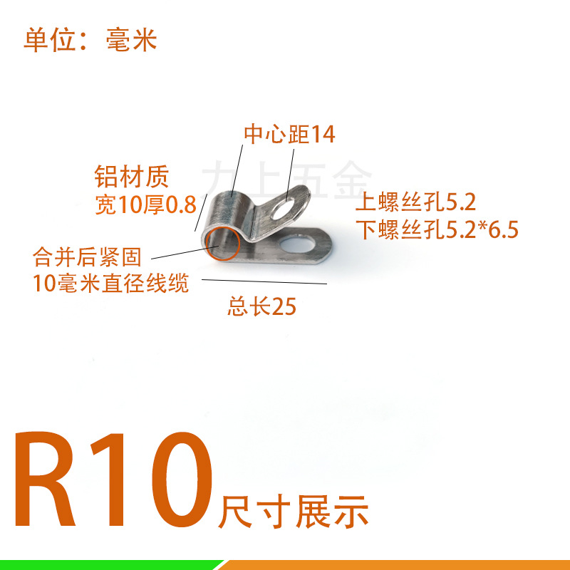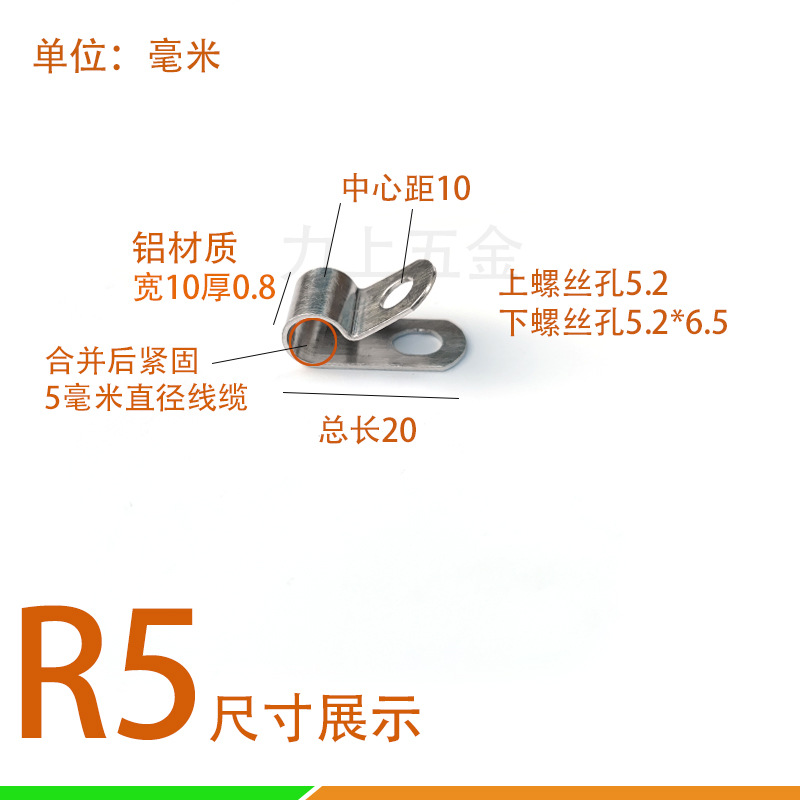 R型铝线夹电线油管栏栅围栏铁网固定扣线缆配件R型屏蔽夹