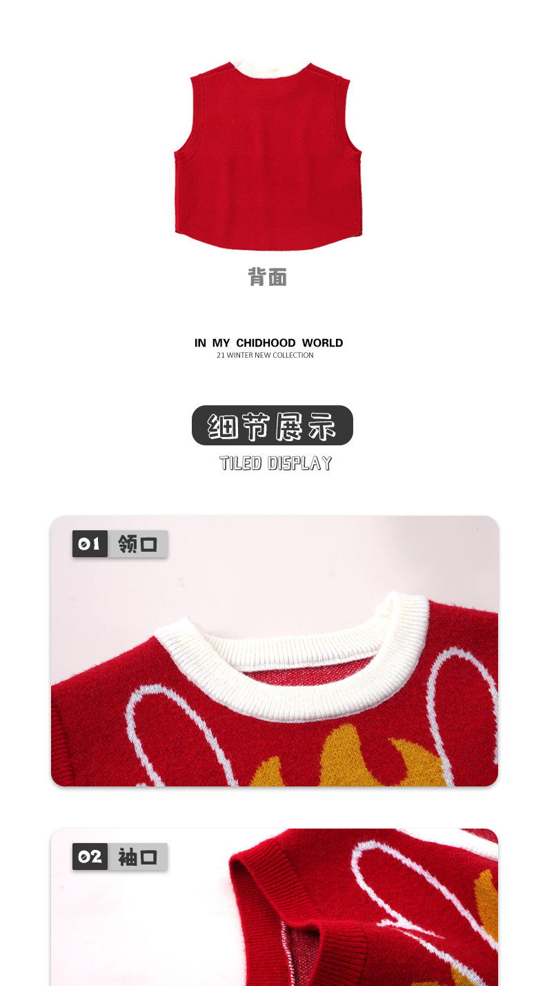 2023 겨울 새로운 아기 어린이 스웨터 조끼 소년과 소녀 만화 새해 인사말 옷 스웨터 조끼스토어 가기