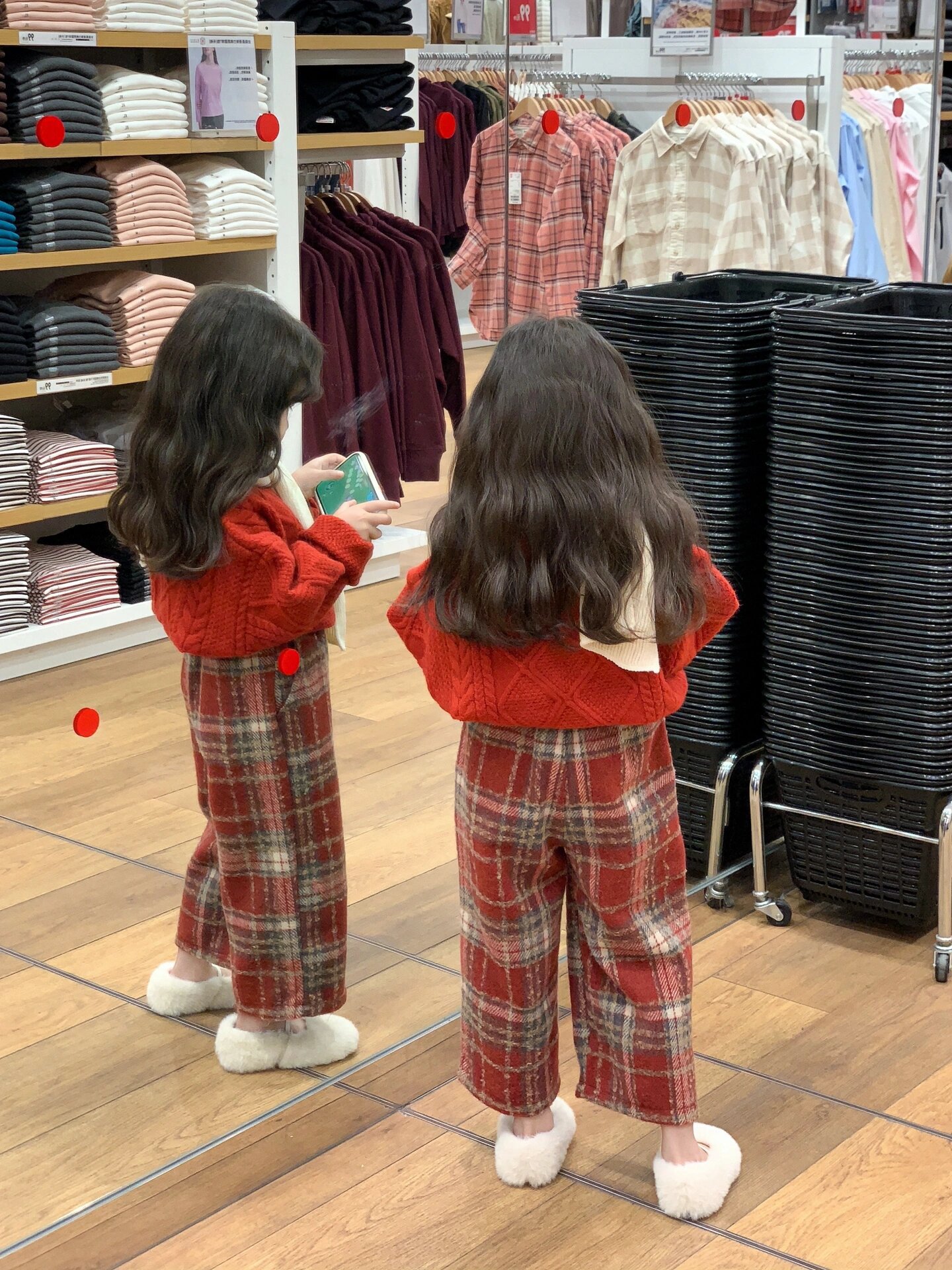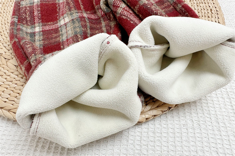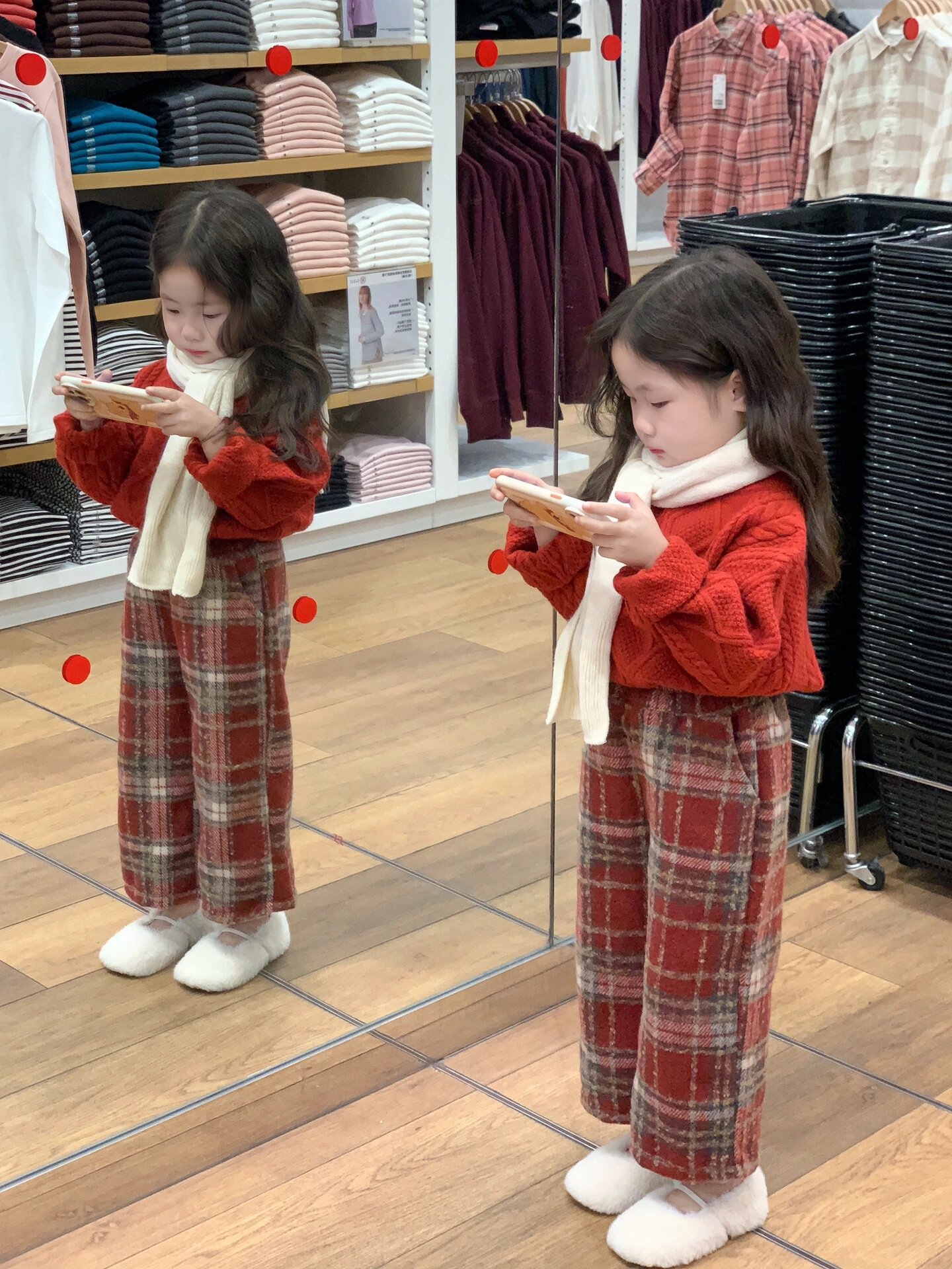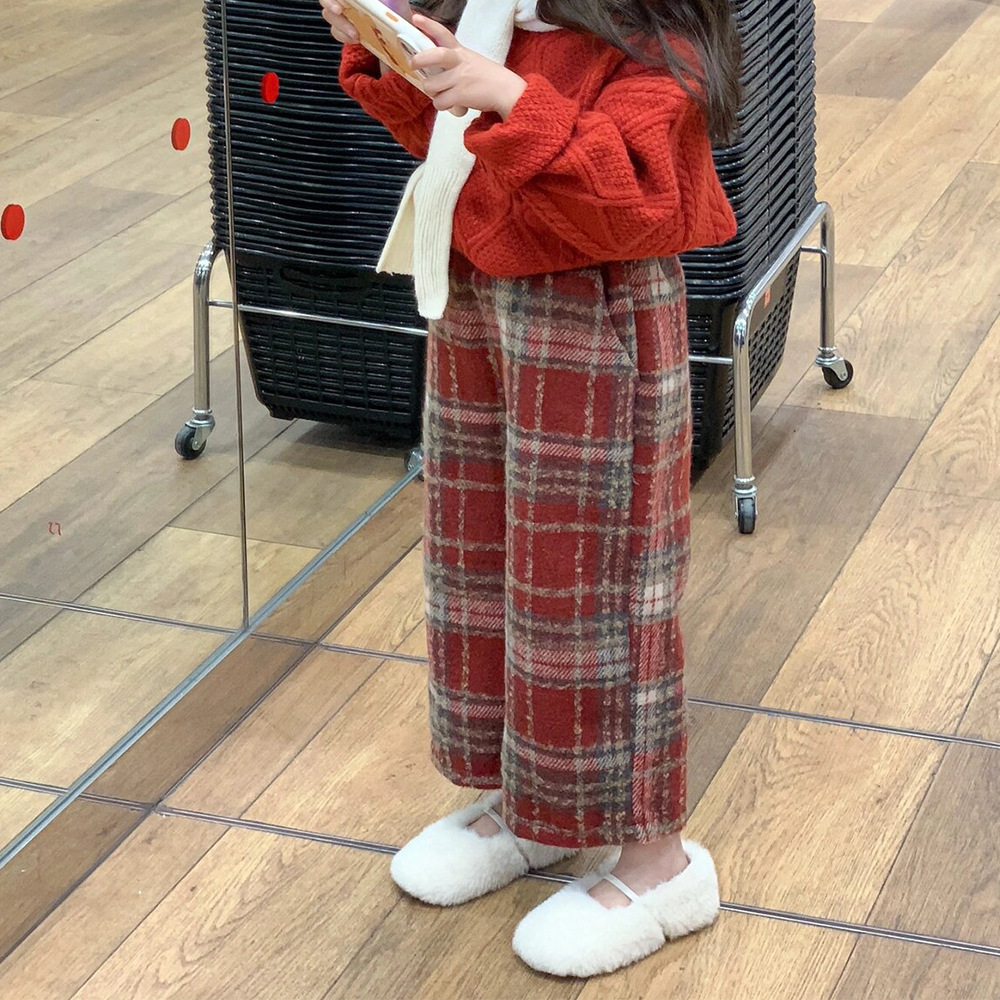 2024 한국어 버전 겨울 새로운 빨간 크리스마스와 새해 스웨터 모직 플러스 벨벳 격자 무늬 바지 정장스토어 가기