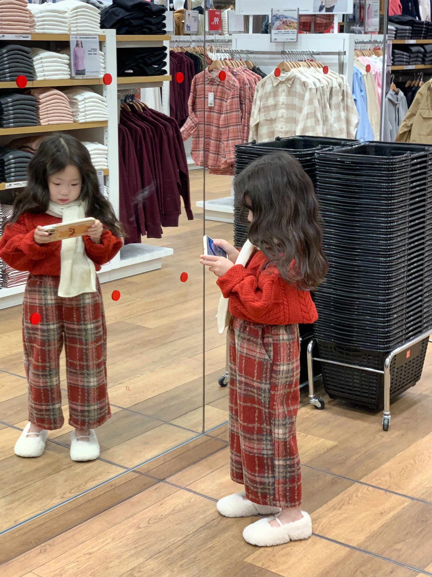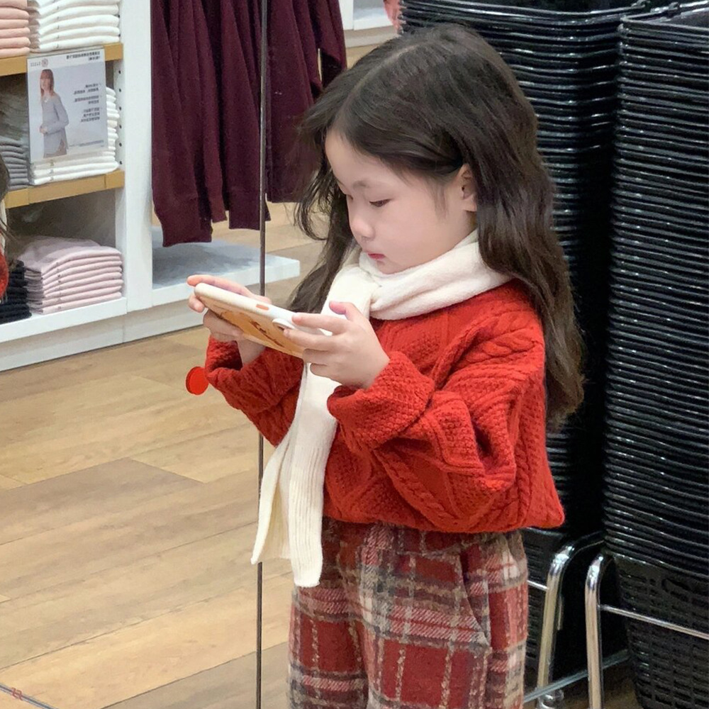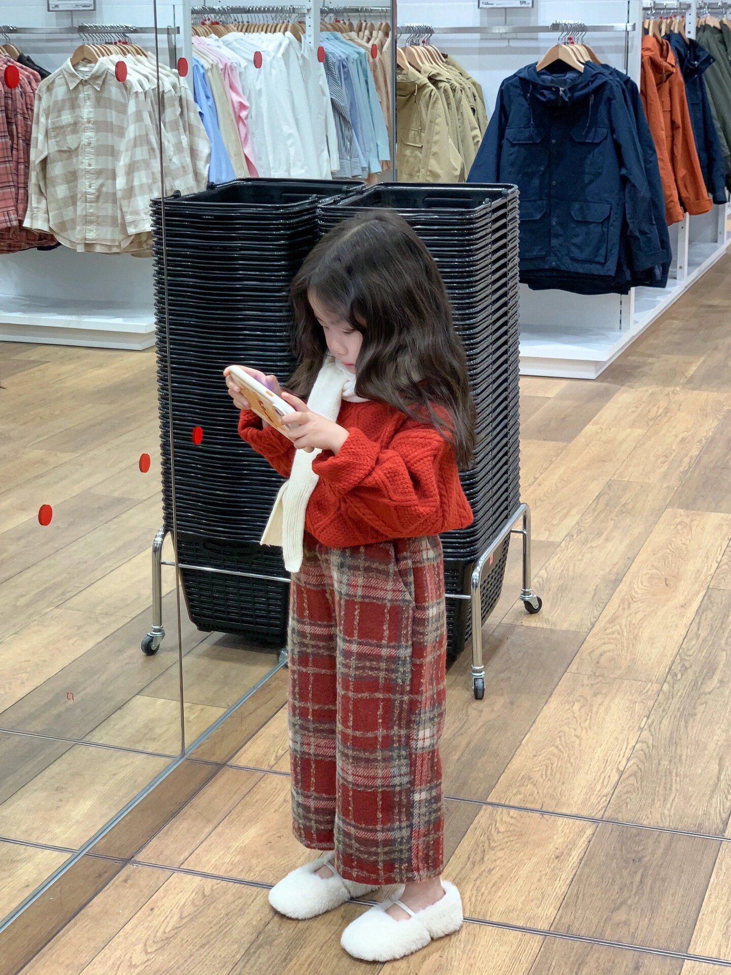 2024 한국어 버전 겨울 새로운 빨간 크리스마스와 새해 스웨터 모직 플러스 벨벳 격자 무늬 바지 정장스토어 가기