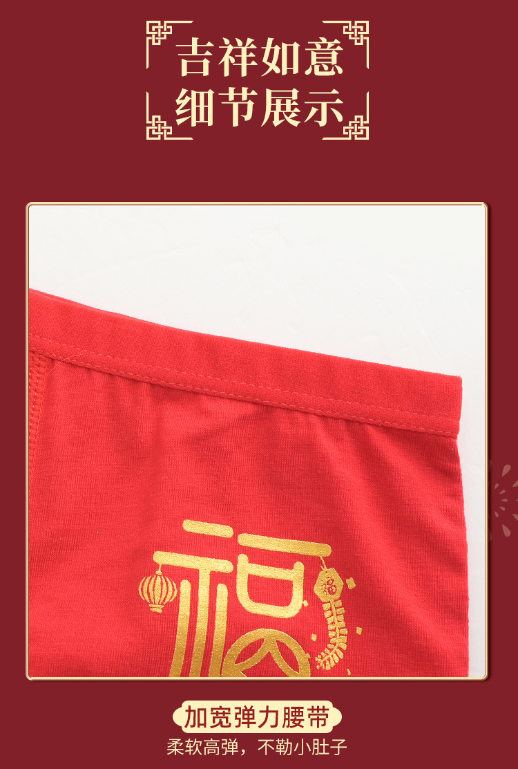 남아용 생년대 붉은 삼각팬티, 청소년 남아용 순면 속옷, 2026년 말년을 맞아 남아용 붉은 반바지