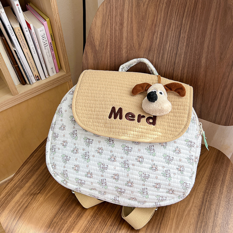 어린이 배낭 한국 스타일 퀼트 귀여운 강아지 격자 무늬 소년 소녀 자수 실 작은 배낭 부모 자식 미라 가방