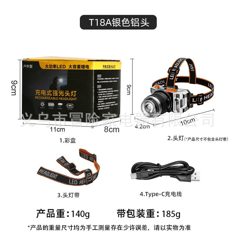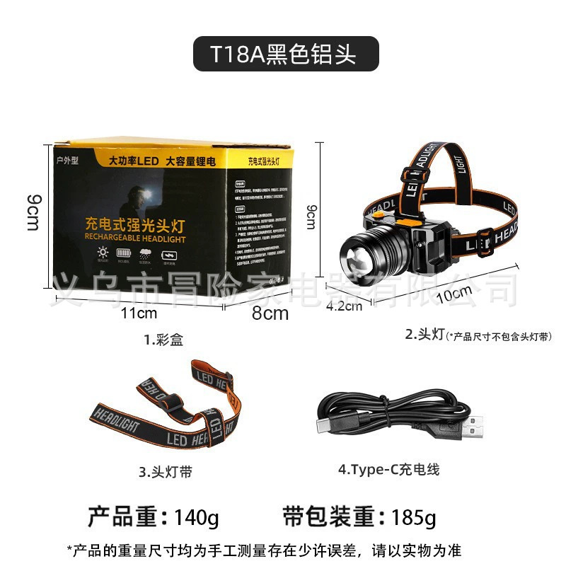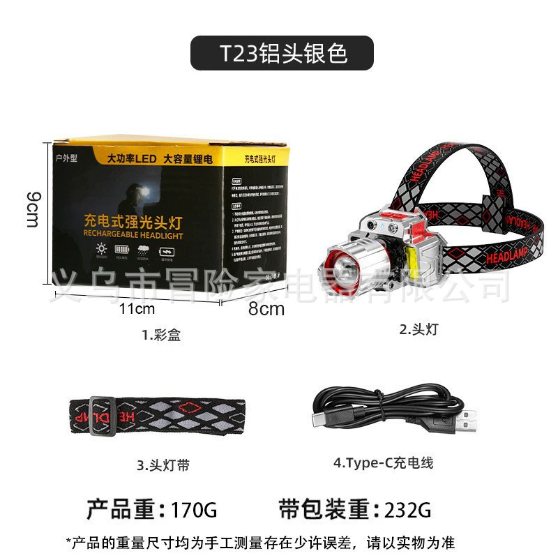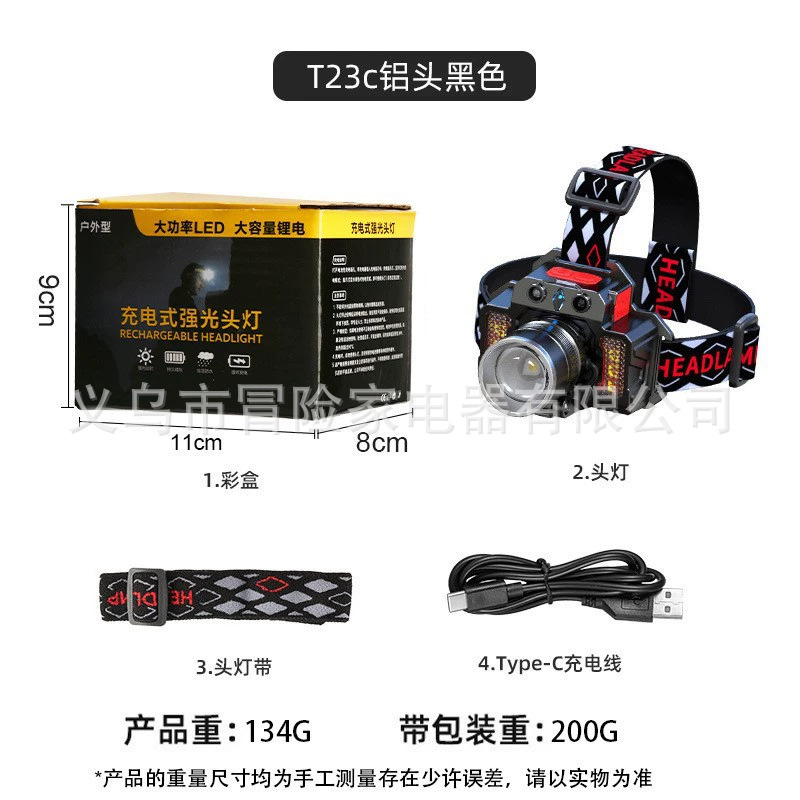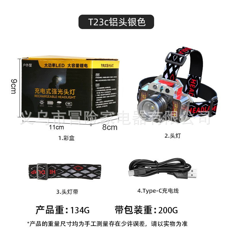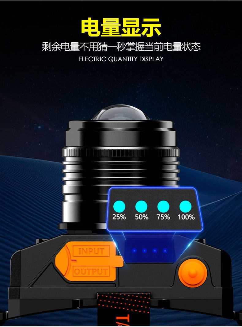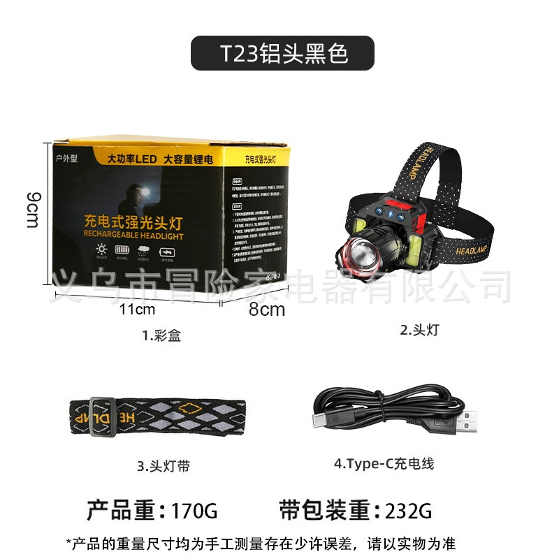 【工作档位】强光-弱光-爆闪-侧灯-侧灯主灯全亮(按感应开关主灯感应)