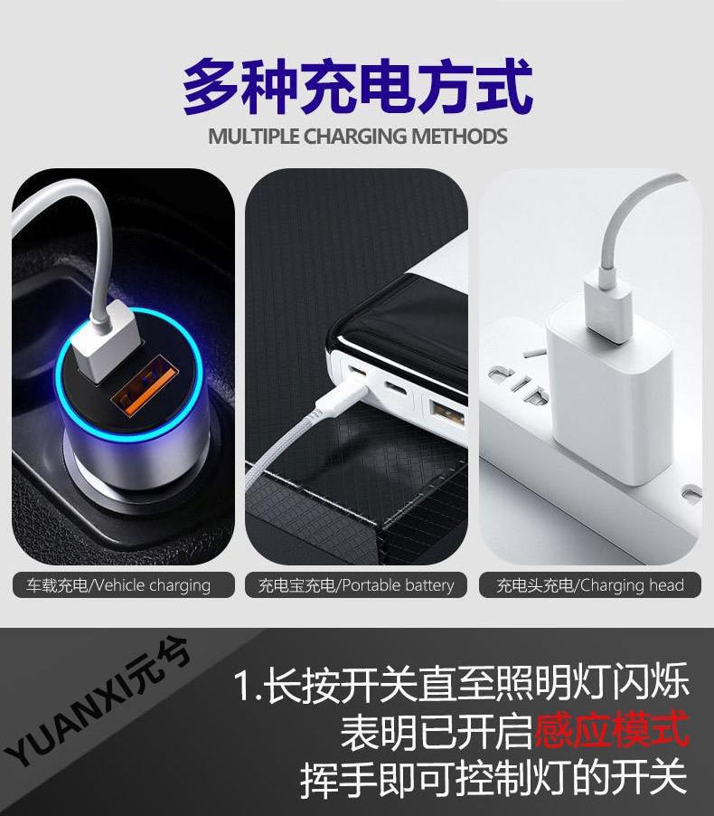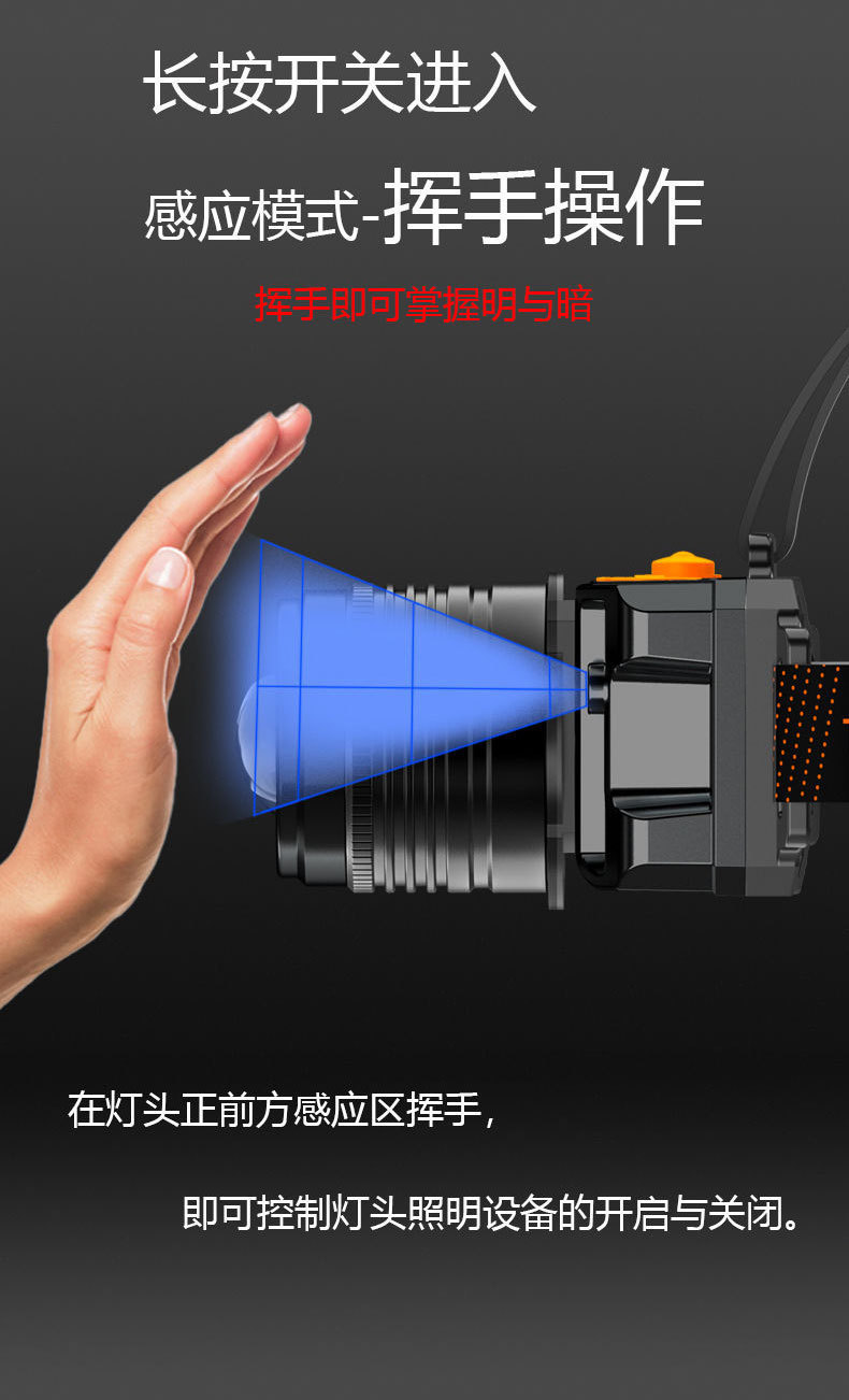 【工作档位】强光-弱光-闪光-长按三秒切换感应