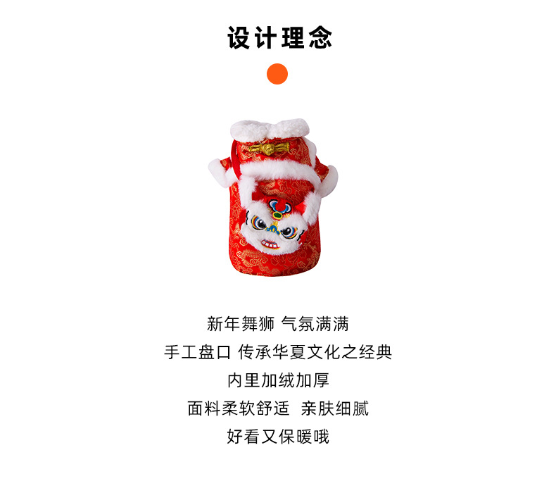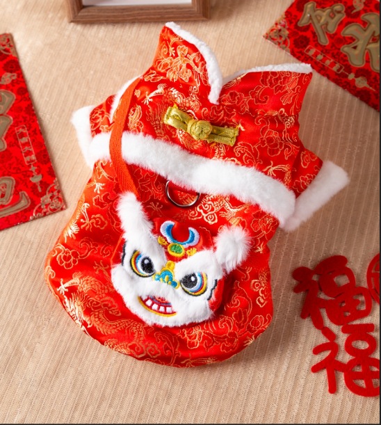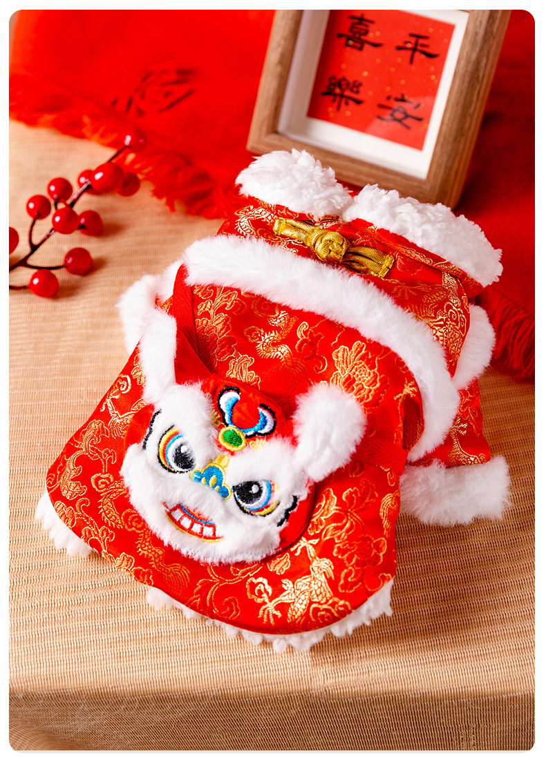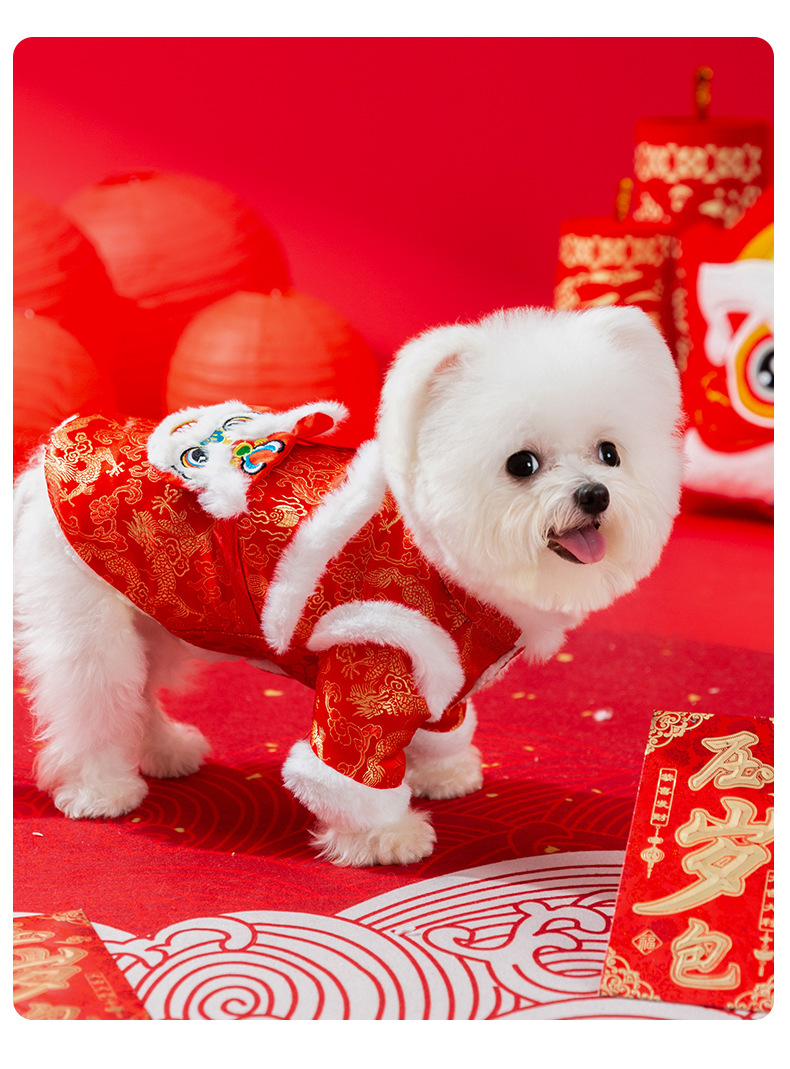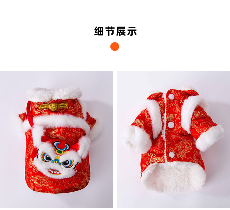 새해 붉은 사자 청동 색 가판면 패딩 옷 작은 개 발이 두꺼워 가을과 겨울 애완 동물 개 옷 도매스토어 가기