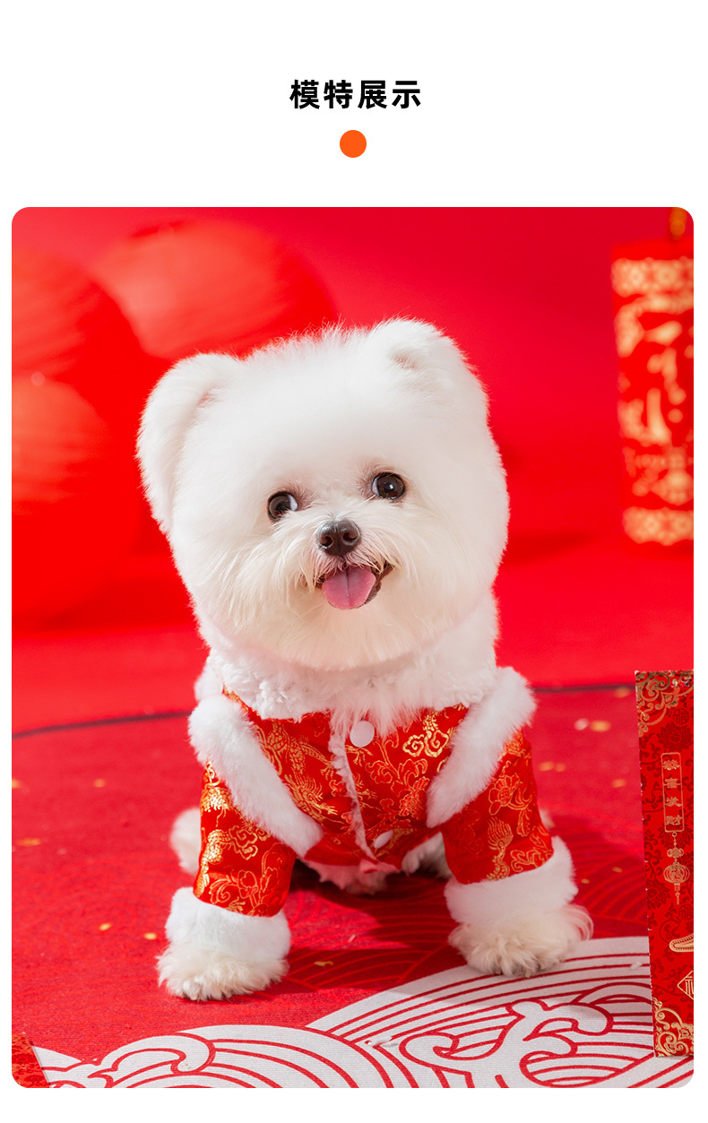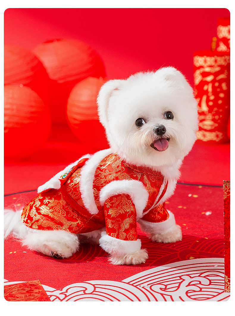 새해 붉은 사자 청동 색 가판면 패딩 옷 작은 개 발이 두꺼워 가을과 겨울 애완 동물 개 옷 도매
