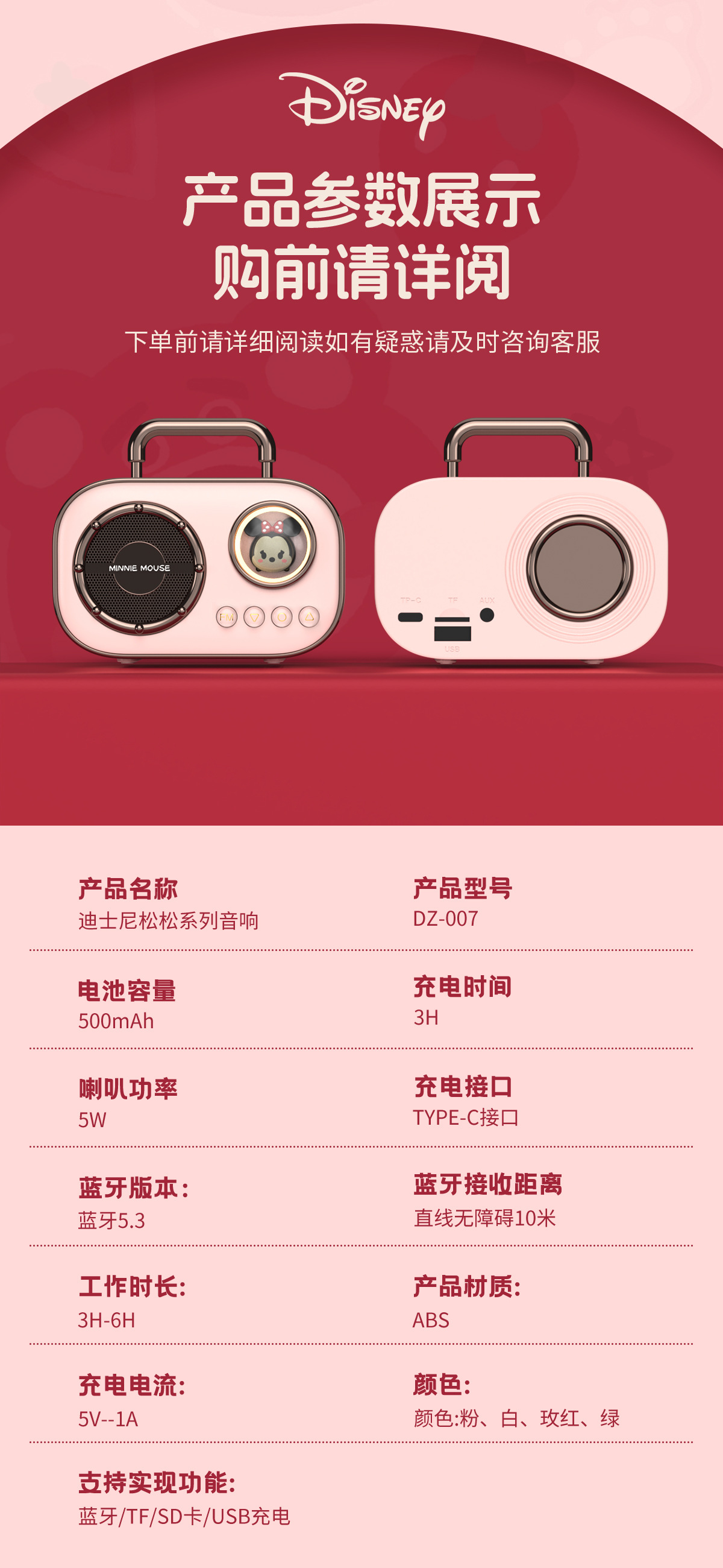 다채로운 조명 새로운 디즈니 블루투스 오디오 야외 휴대용 서브 우퍼 선물 도매 디즈니 스피커스토어 가기