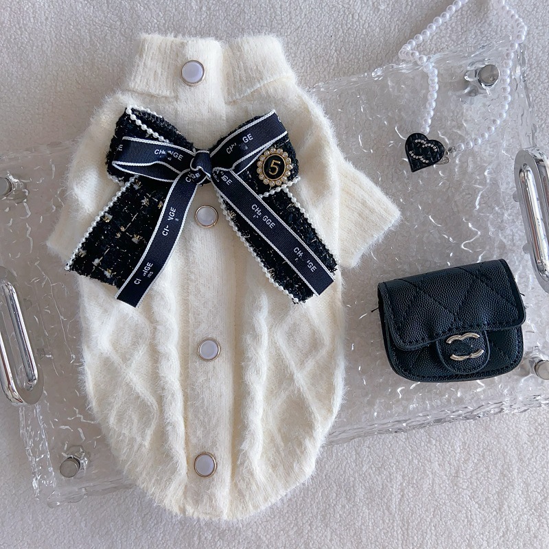 조수 브랜드 개 스웨터 부드러운 밍크 헤어 작은 향기로운 바람 활 곰 방법 dou 가을과 겨울 애완 동물 옷 도매스토어 가기