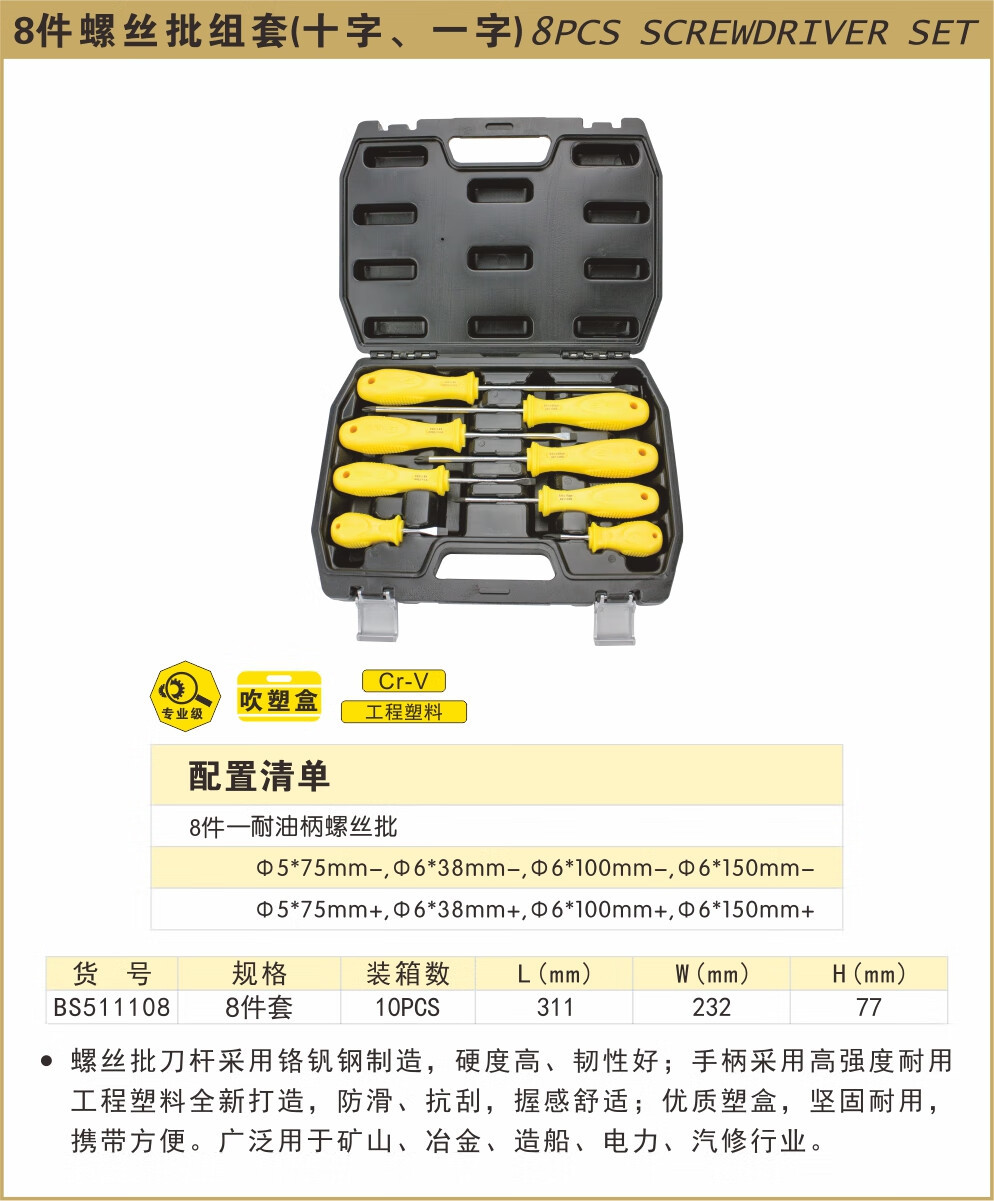 • BS511108 8 피스 드라이버 세트 (크로스 워드)