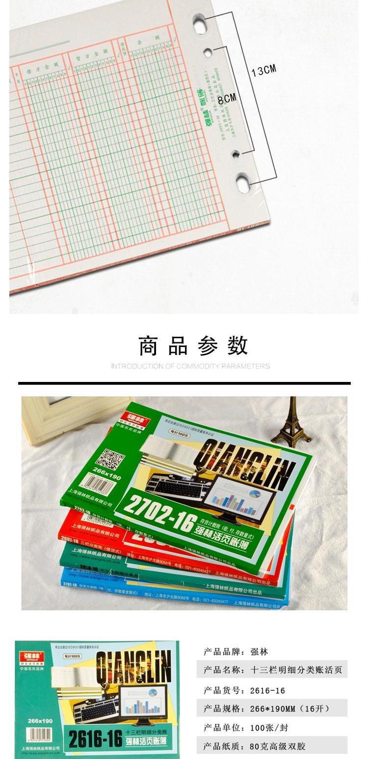 Qianglin 2601-16 3 열 재고 분류 13 열 느슨한 잎 계정 핵심 핫 대출 금융