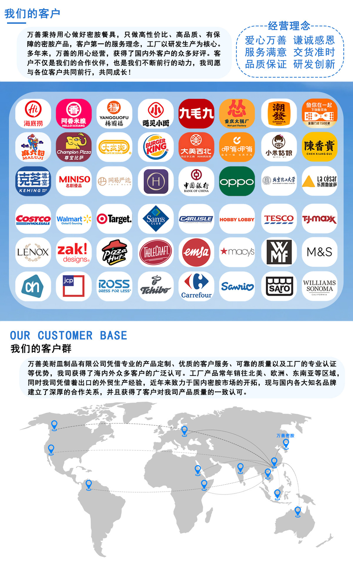 东莞万善美耐皿制品有限公司是一家专注于美耐皿产品研发与制造的国际化企业。自1981年创立于中国台湾省以来,公司始终致力于提供高性价比、美观耐用且符合国际标准的美耐皿产品。1994年,万善在广东东莞桥头镇设立生产基地,工厂注册资金1560万美元,拥有占地62,500平方米的自建厂房。作为全球化战略布局的重要环节,万善还在印度新德里和马来西亚设立了生产工厂,以满足全球市场的需求。