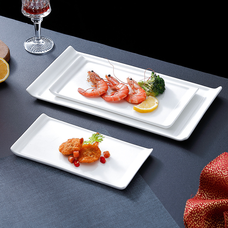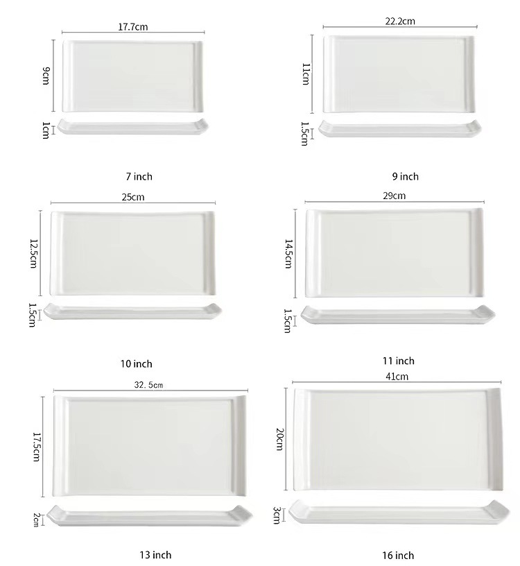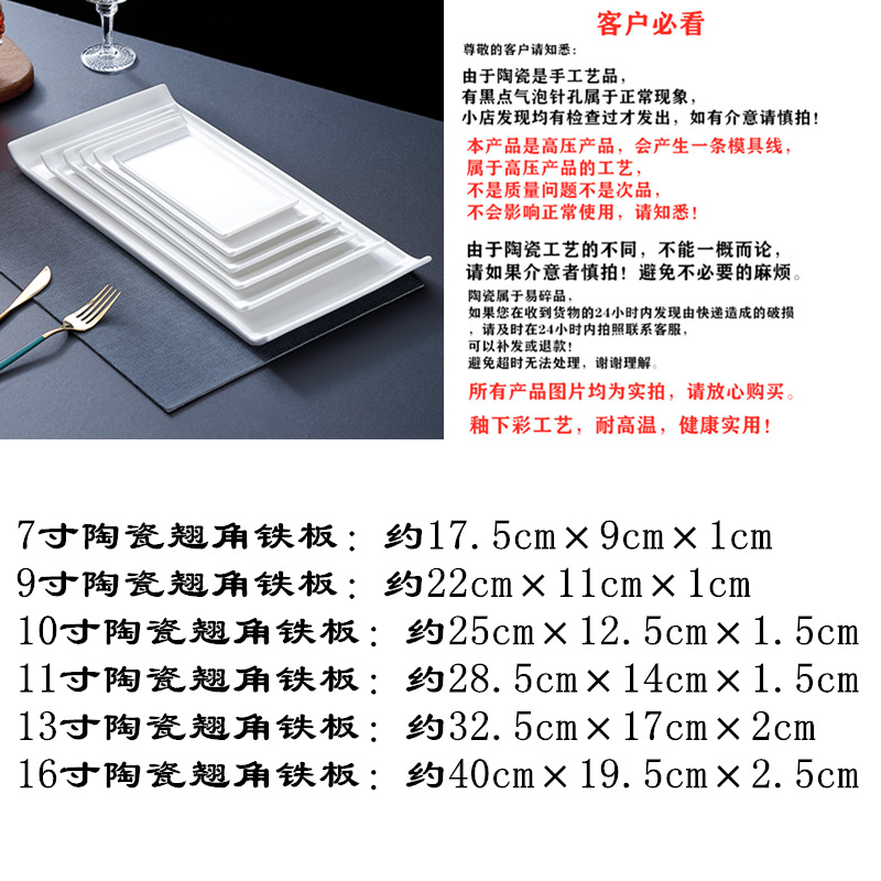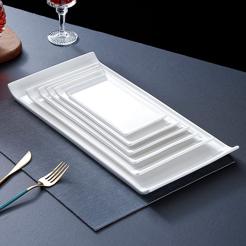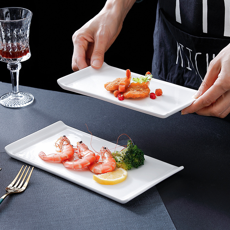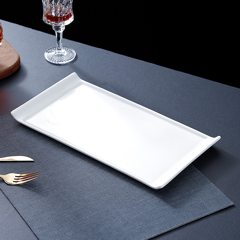 세라믹 식기 호텔 플랫 케이크 트레이 직사각형 접시 디저트 스시 플레이트 스테이크 플레이트 앵글 아이언 플레이트 디너 플레이트
