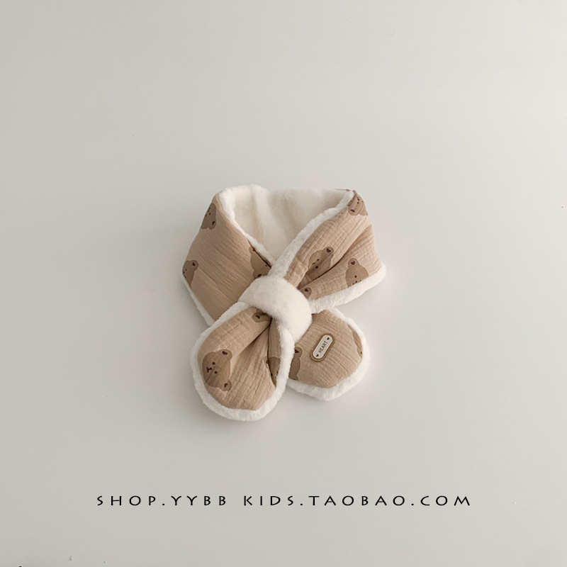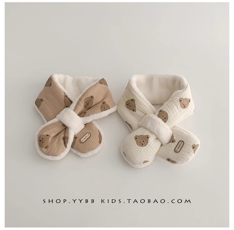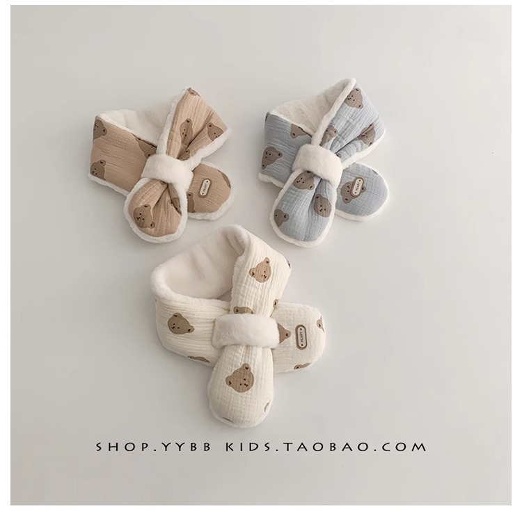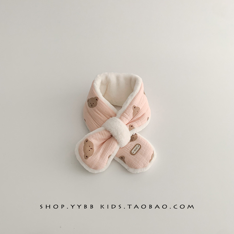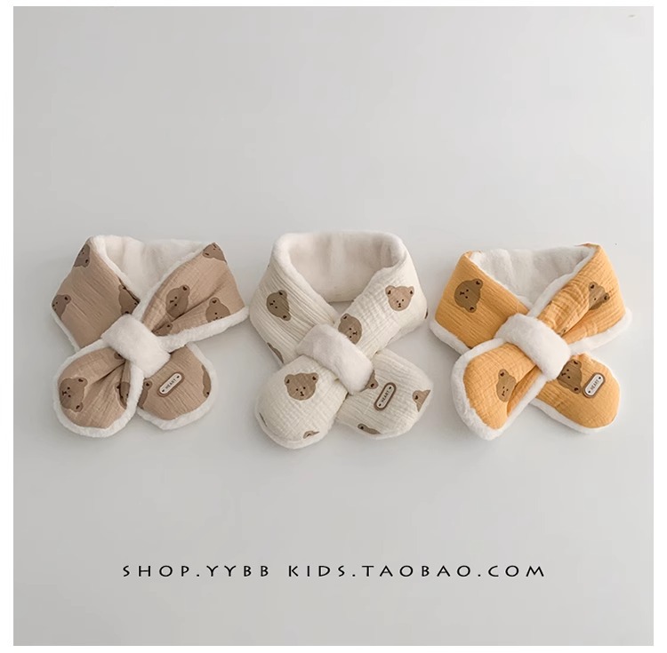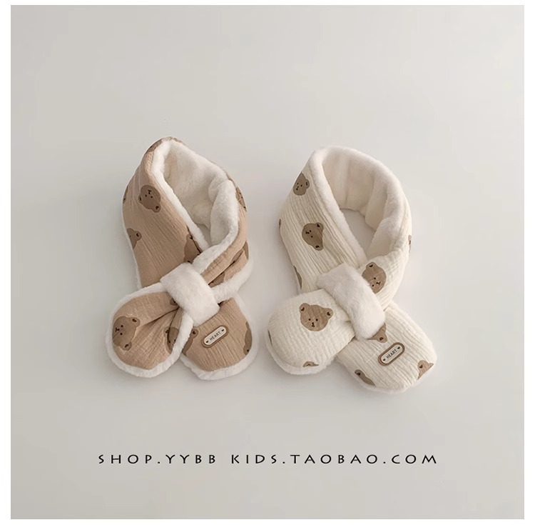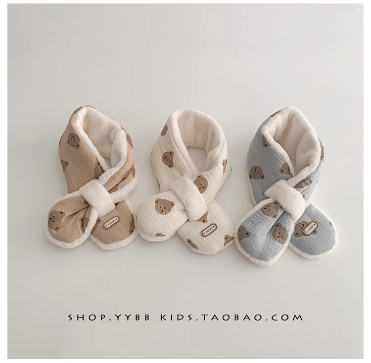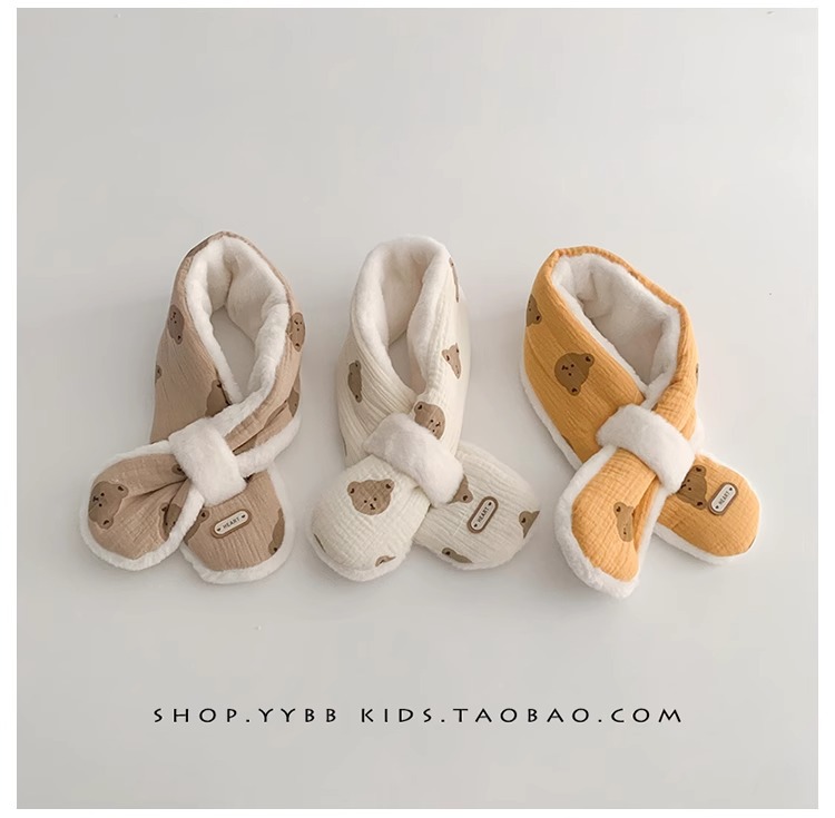 아기 스카프, 곰돌이 모양, 겨울용 보온 플러스 벨벳 안감, 방풍 넥워머, 남녀 아기 및 어린이용, 겨울용 두꺼운 보온 스카프